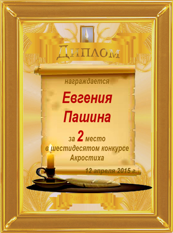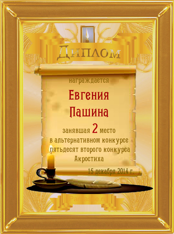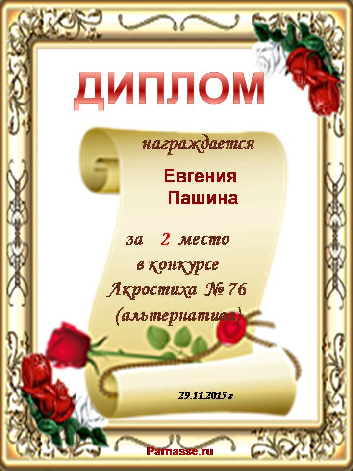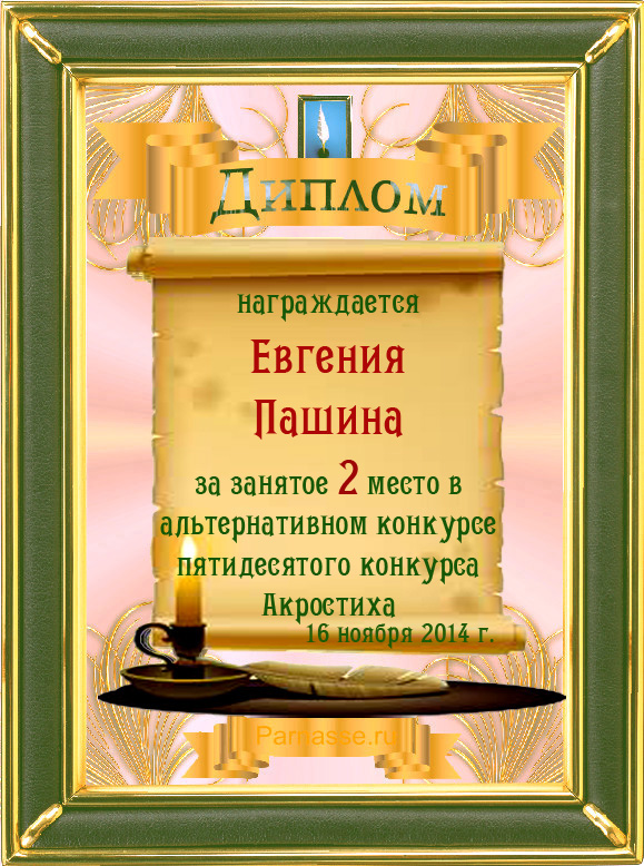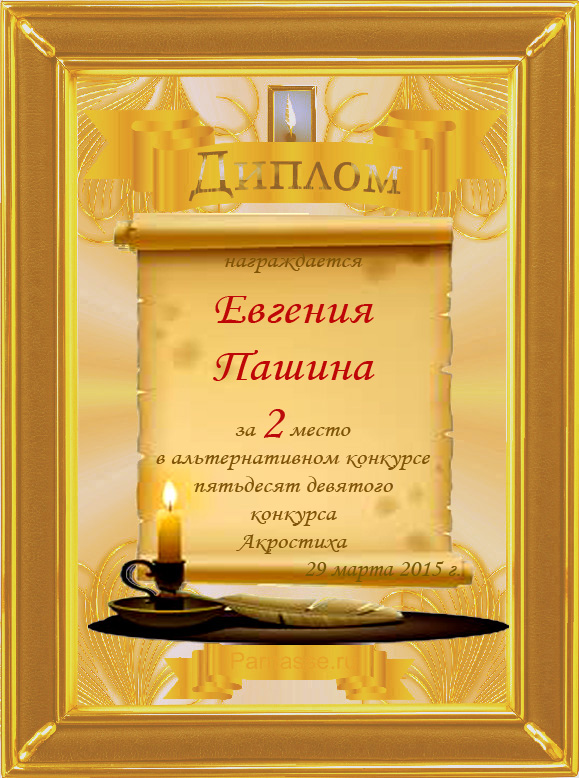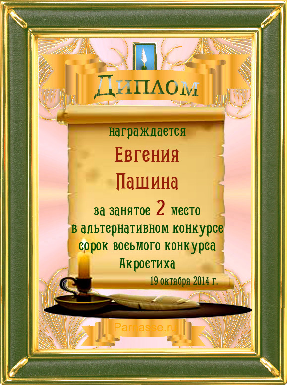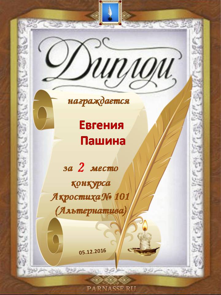 Диплом за 2 место в 101 конкурсе АКРОСТИХА (Альтернатива)! ПОЗДРАВЛЯЮ!