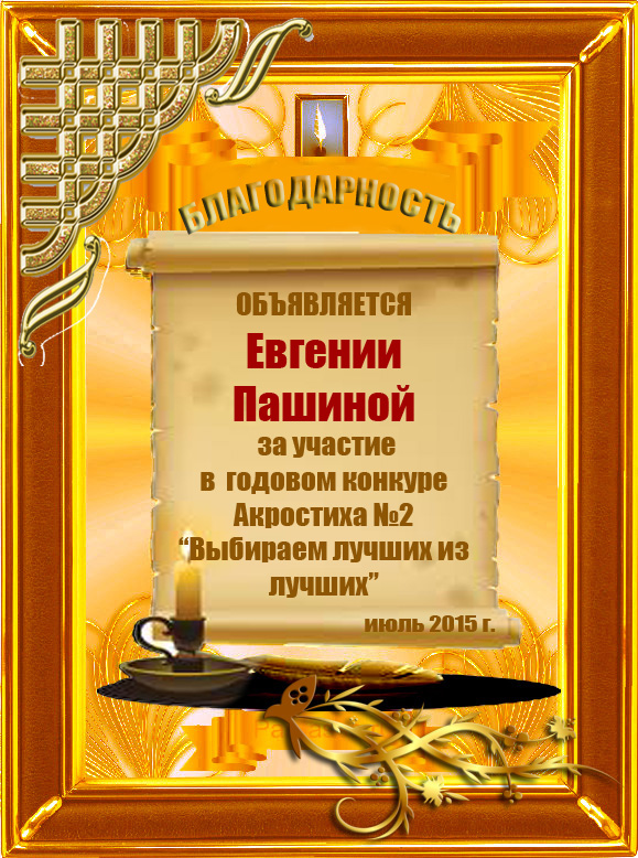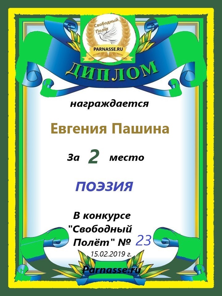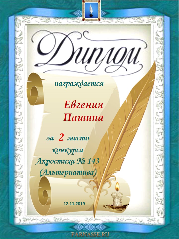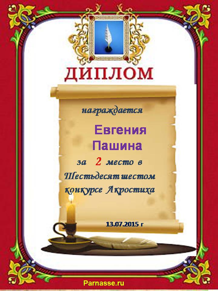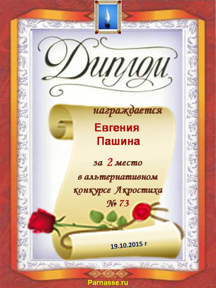 Диплом за 2 место в 101 конкурсе АКРОСТИХА (Альтернатива)! ПОЗДРАВЛЯЮ!