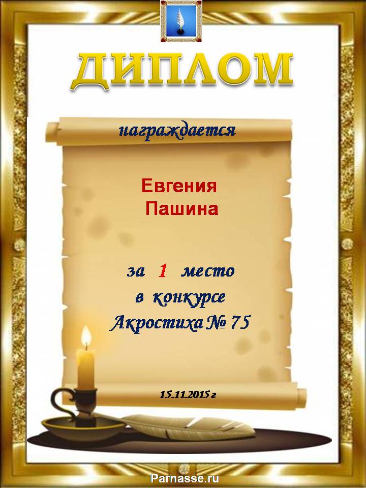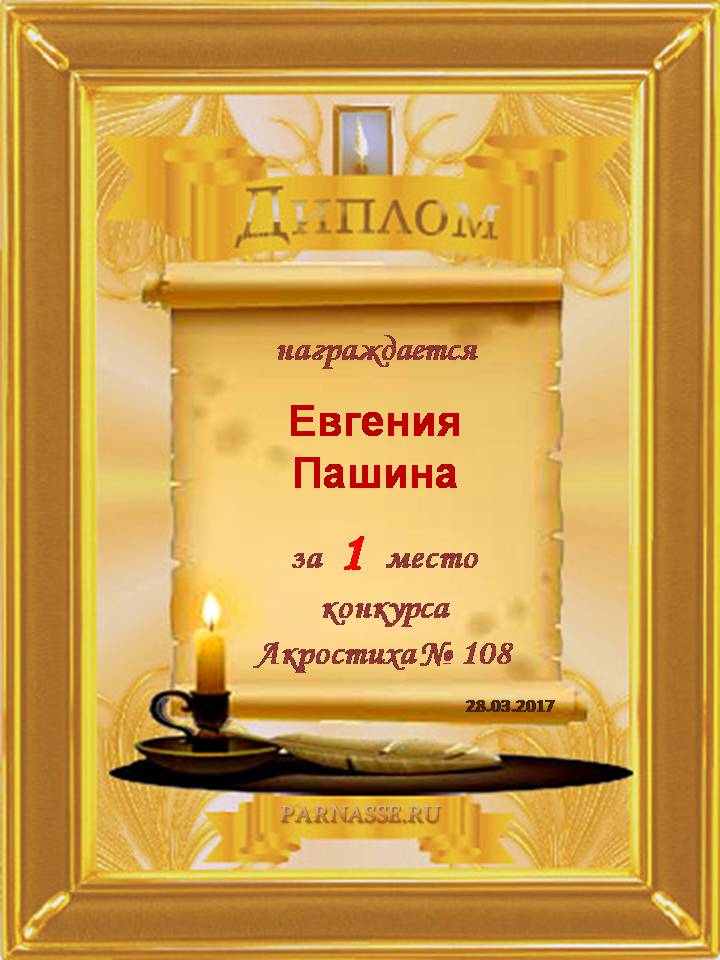 Диплом за 1 место в 107 конкурсе АКРОСТИХА (Альтернатива)! ПОЗДРАВЛЯЮ!