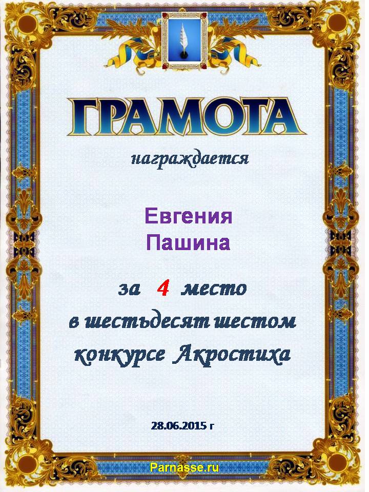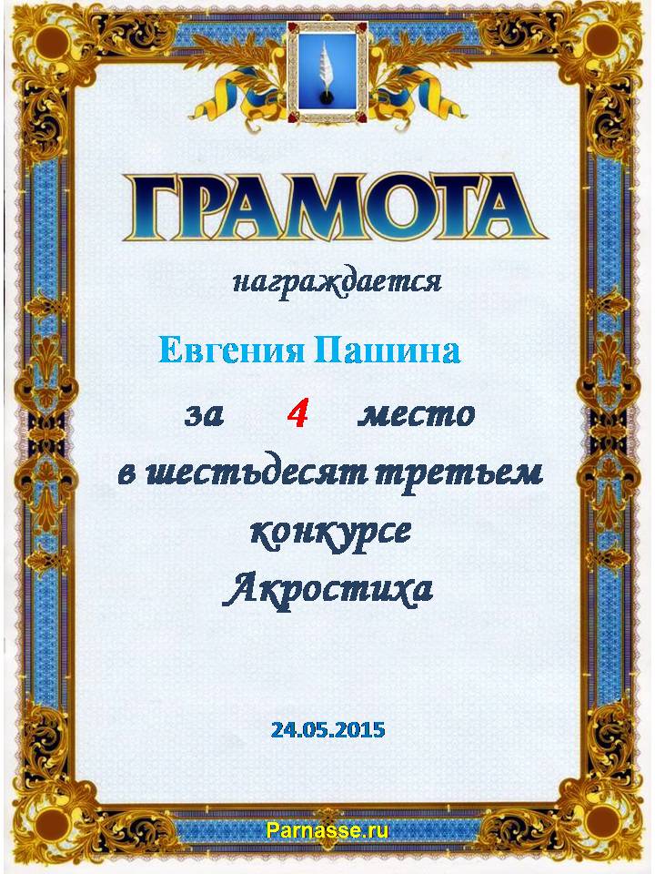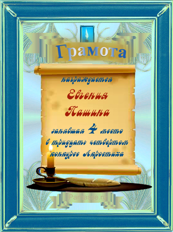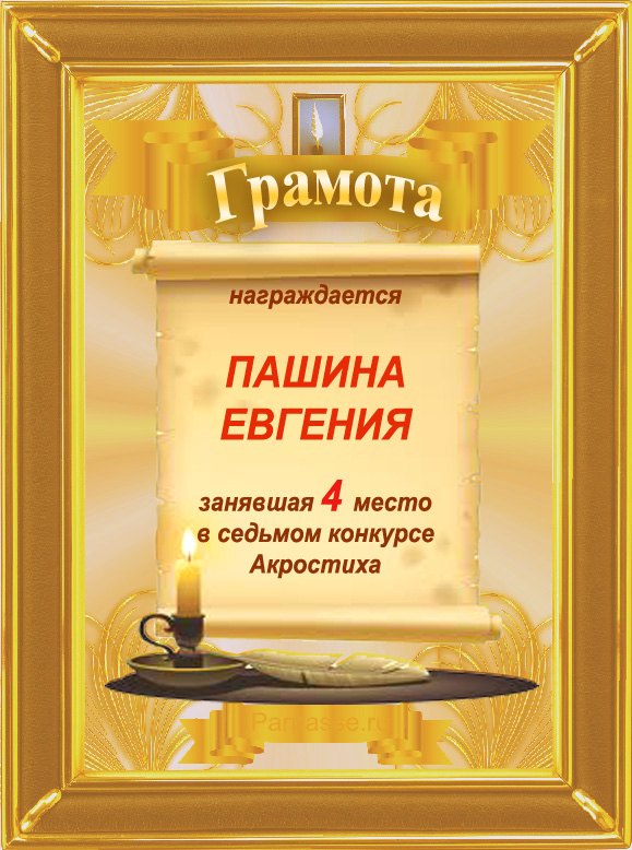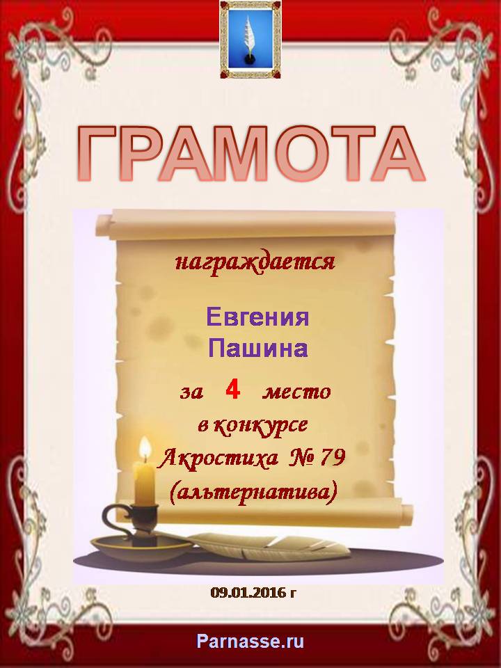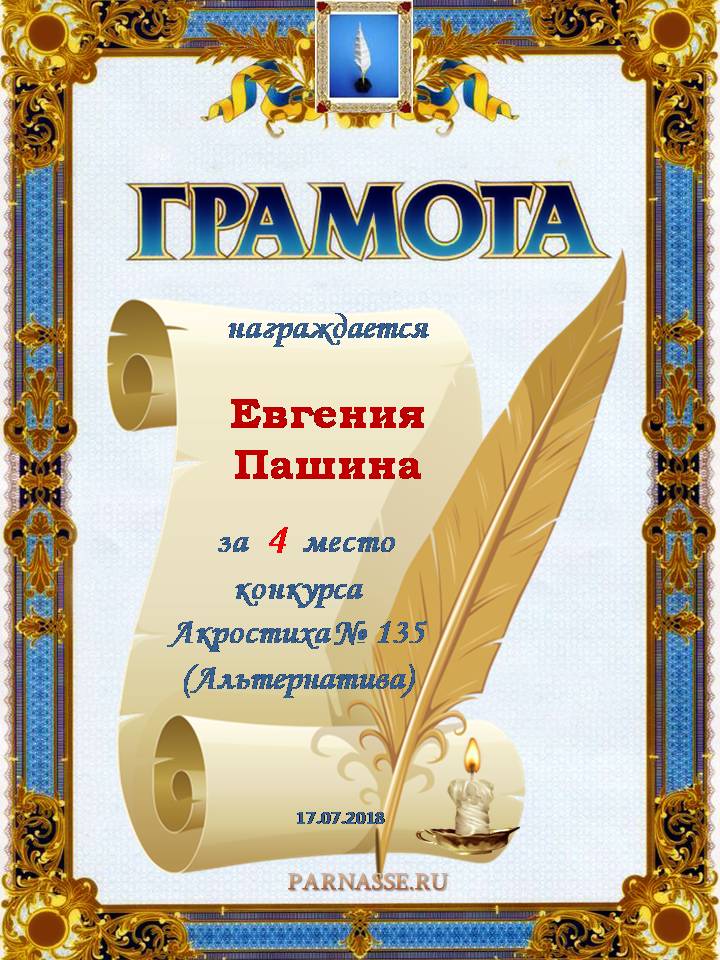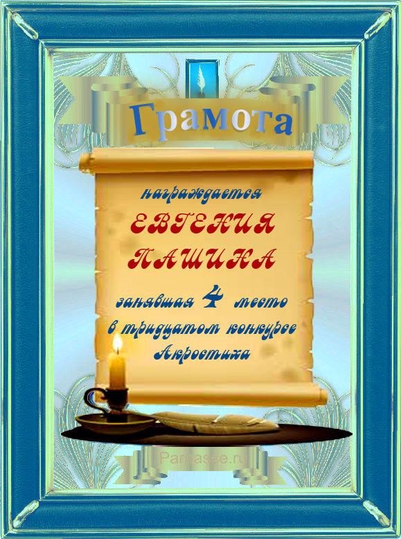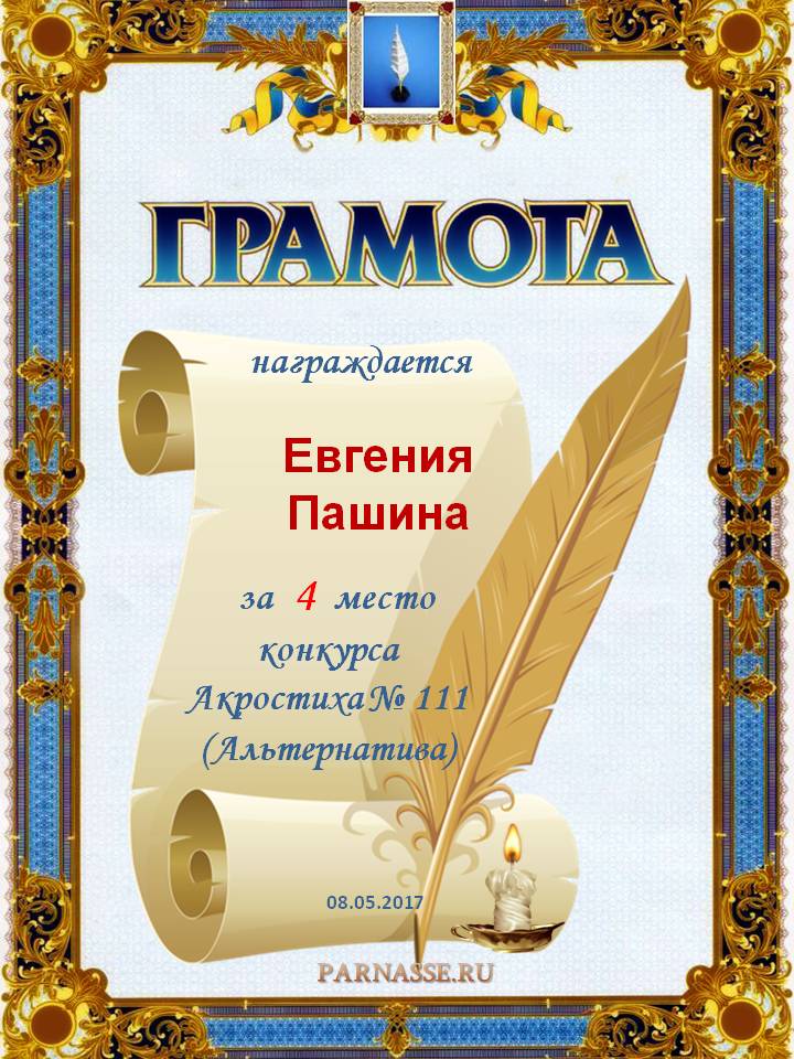 Грамота за 4 место в 111 конкурсе АКРОСТИХА (Альтернатива)! ПОЗДРАВЛЯЮ!