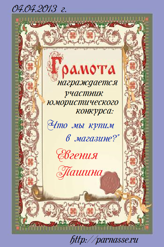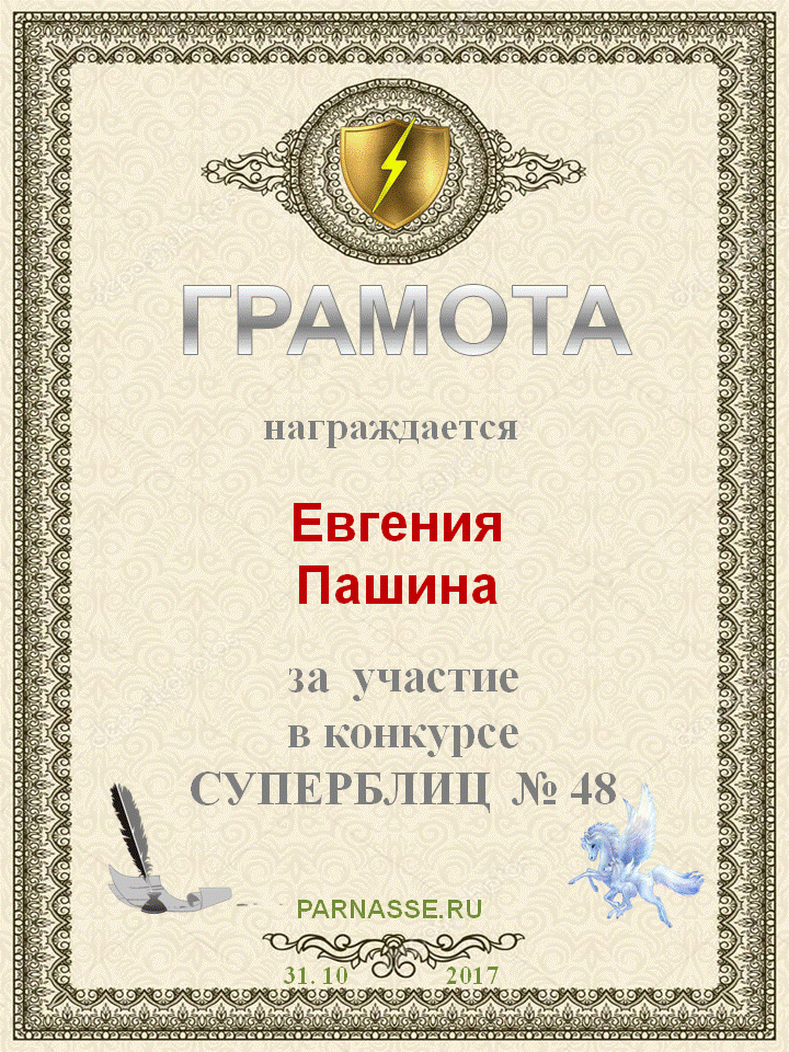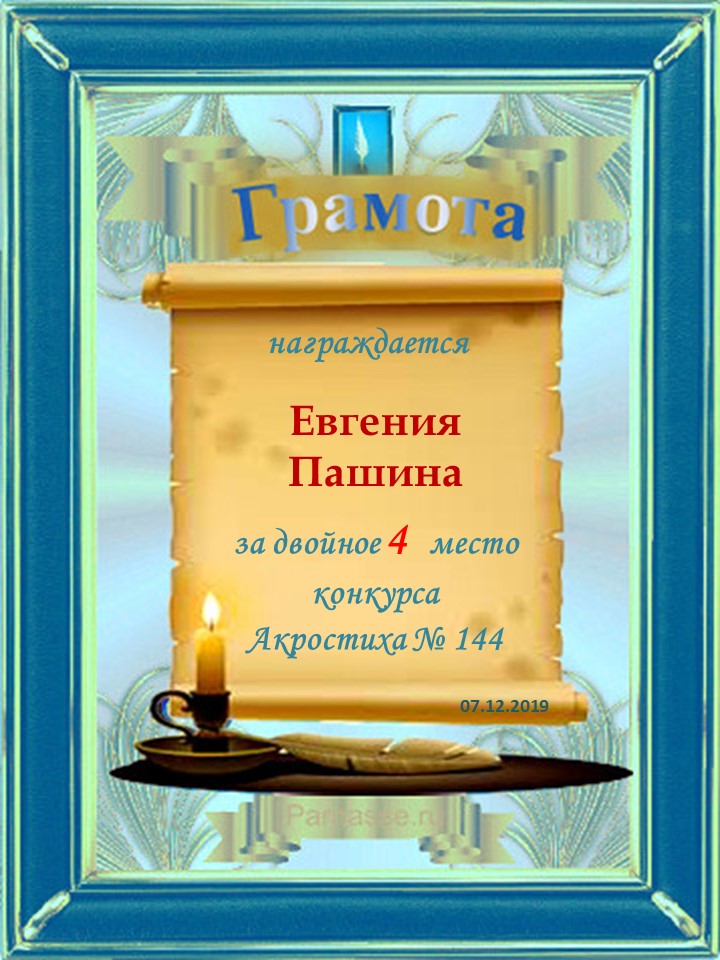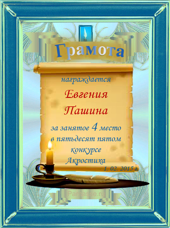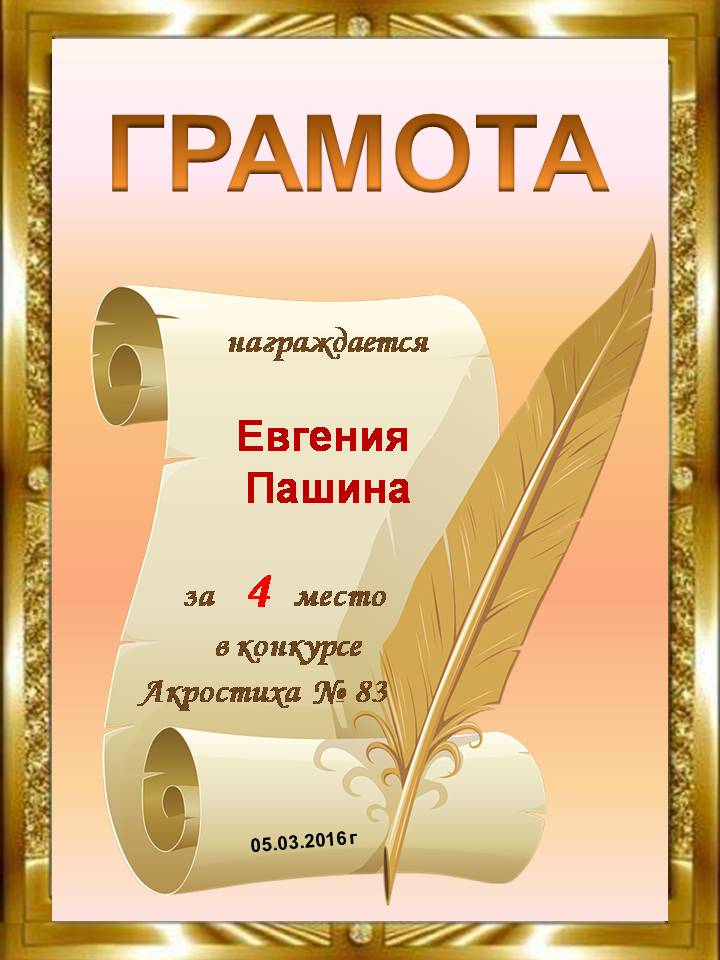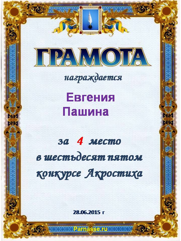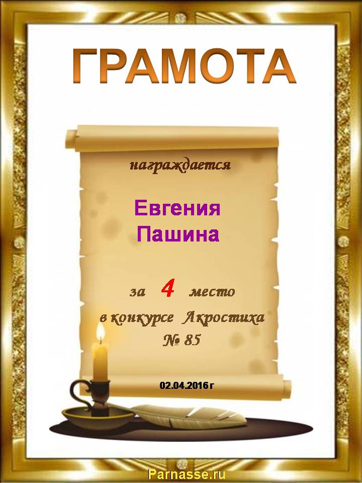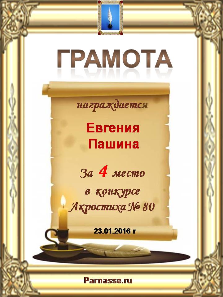 Грамота за 4 место в 111 конкурсе АКРОСТИХА (Альтернатива)! ПОЗДРАВЛЯЮ!