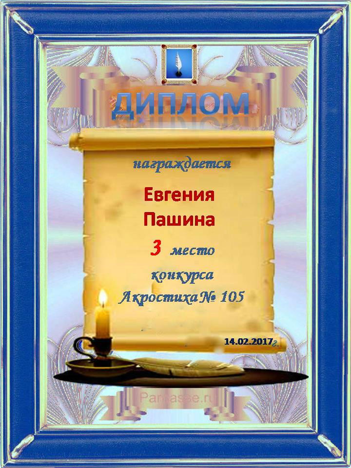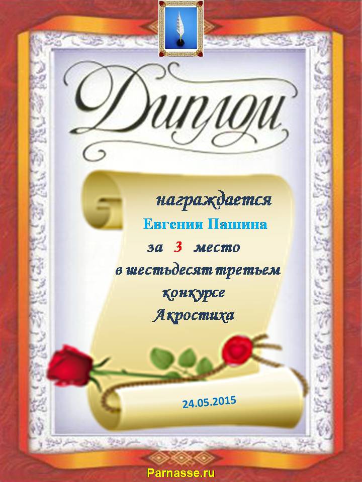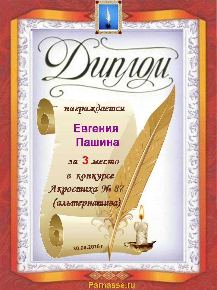 Диплом за 3 место в 105 конкурсе АКРОСТИХА (Альтернатива)! ПОЗДРАВЛЯЮ!