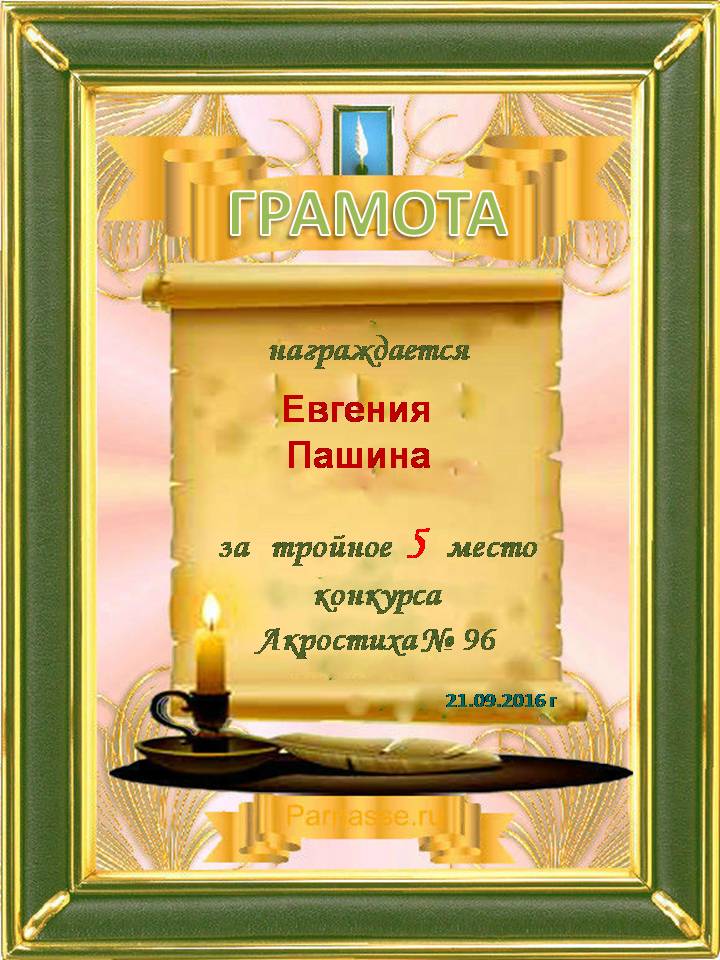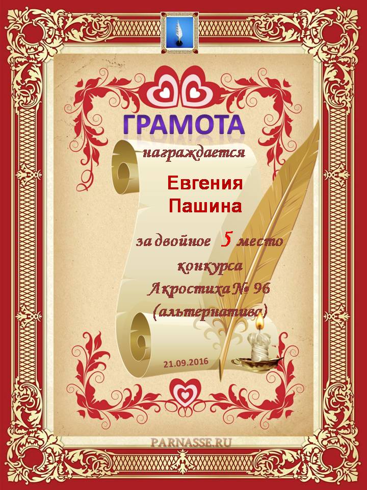 Грамота за двойное 5 место в 96 конкурсе АКРОСТИХА (Альтернатива)! ПОЗДРАВЛЯЮ!