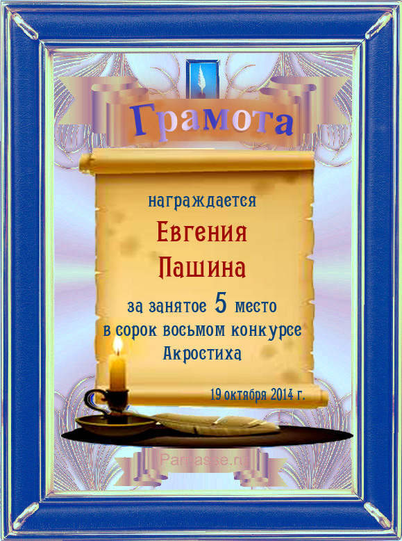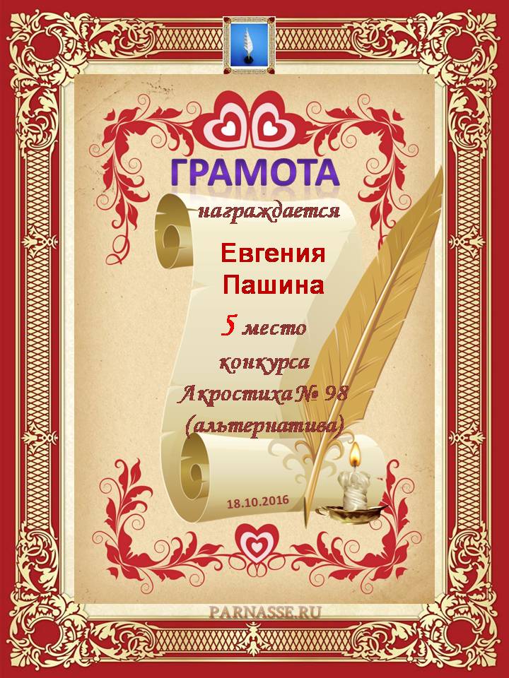 Грамота за 5 место в 98 конкурсе АКРОСТИХА (Альтернатива)! ПОЗДРАВЛЯЮ!