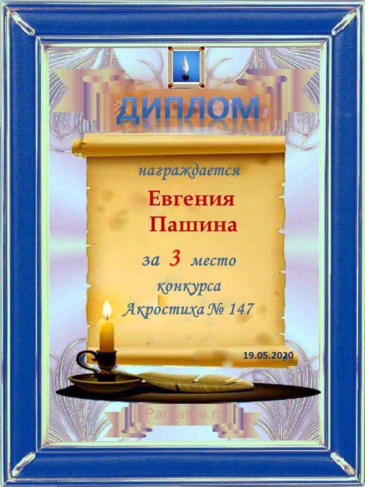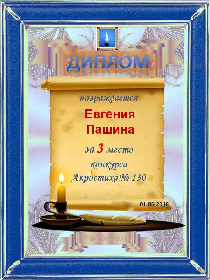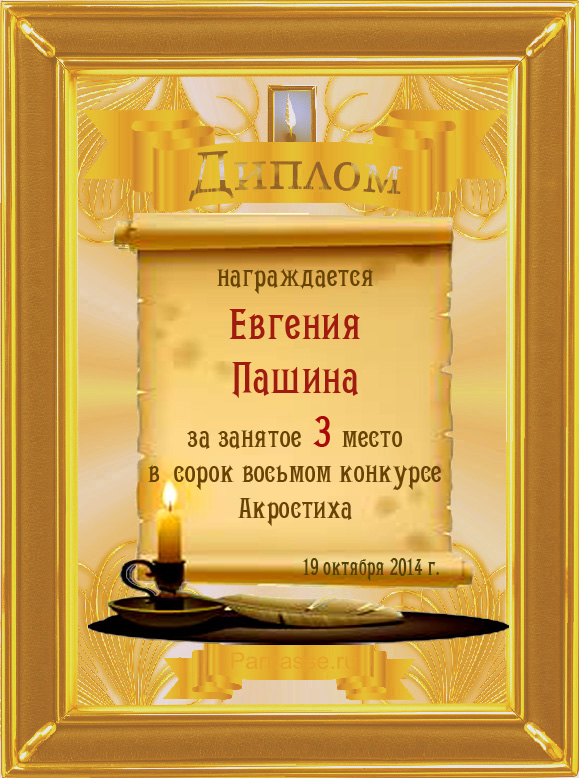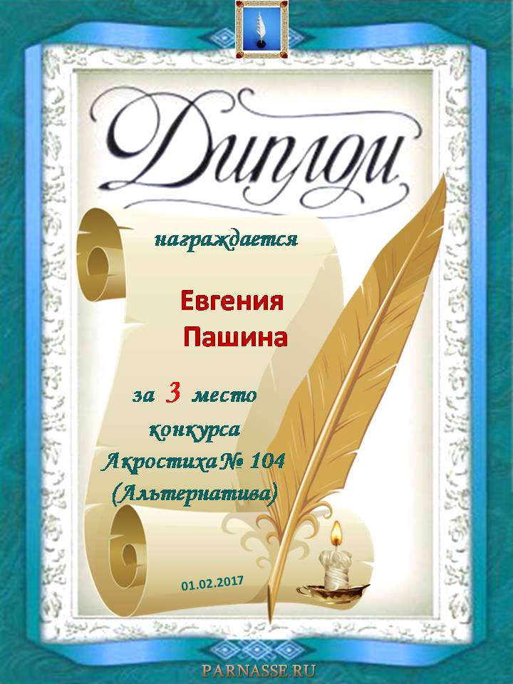 Диплом за 3 место в 104 конкурсе АКРОСТИХА (Альтернатива)! ПОЗДРАВЛЯЮ!