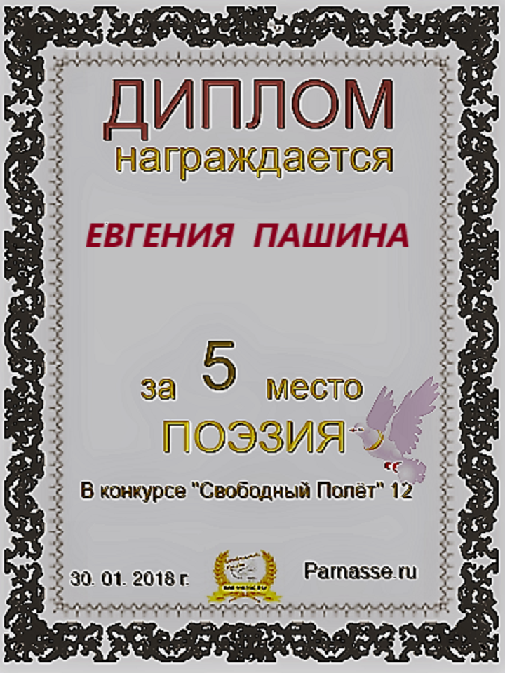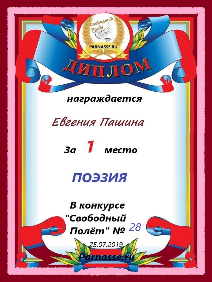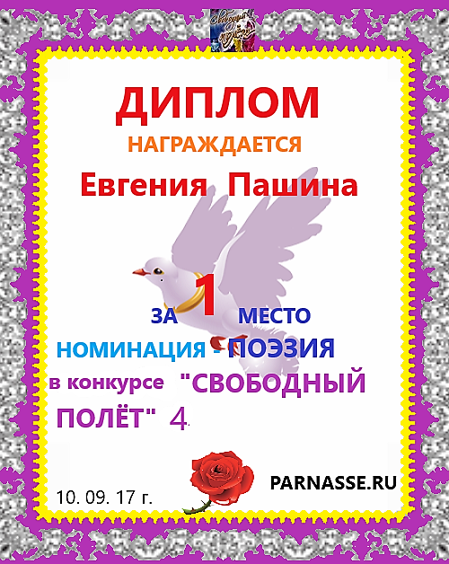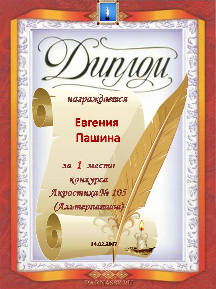 Диплом за 1 место в 105 конкурсе АКРОСТИХА (Альтернатива)! ПОЗДРАВЛЯЮ!