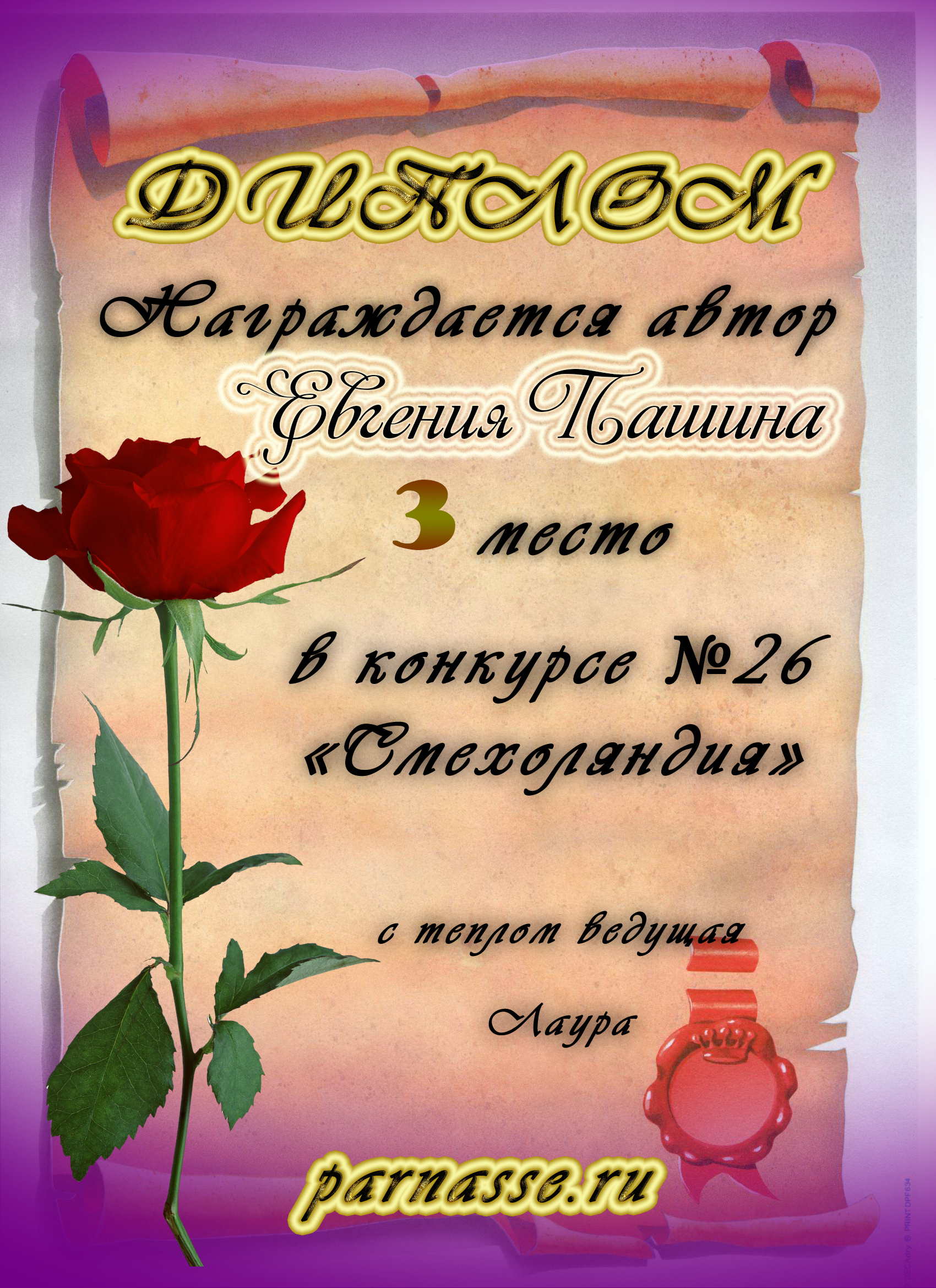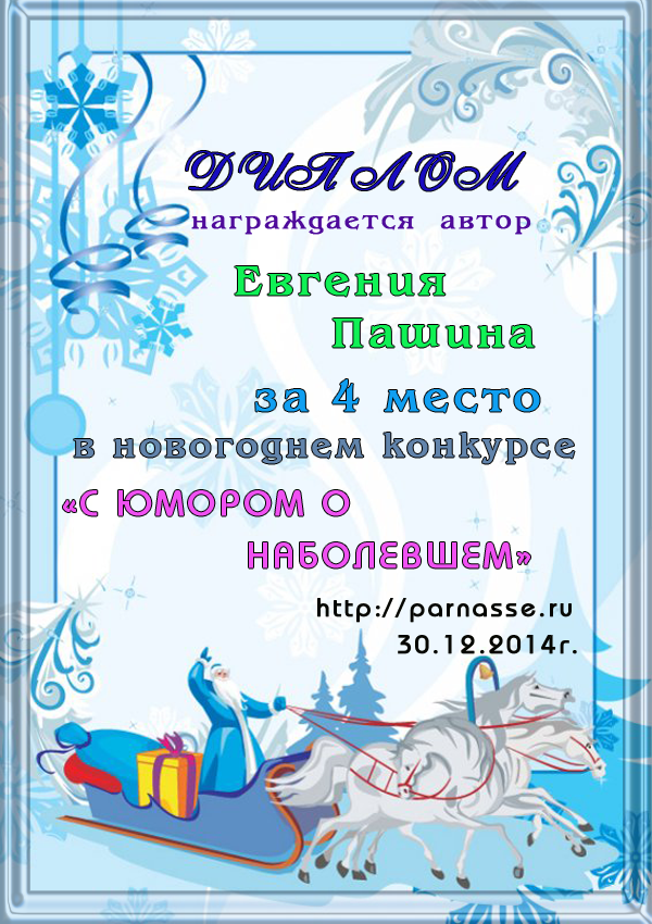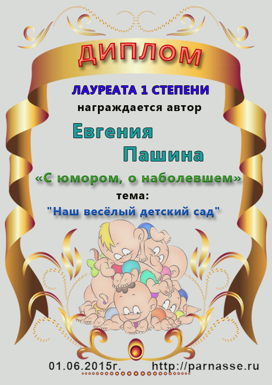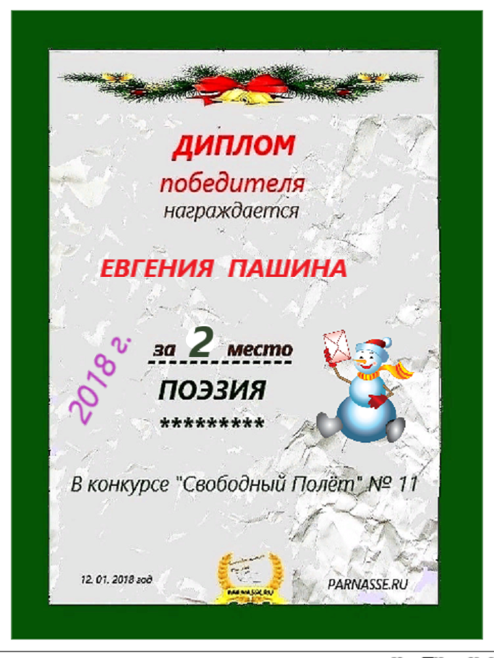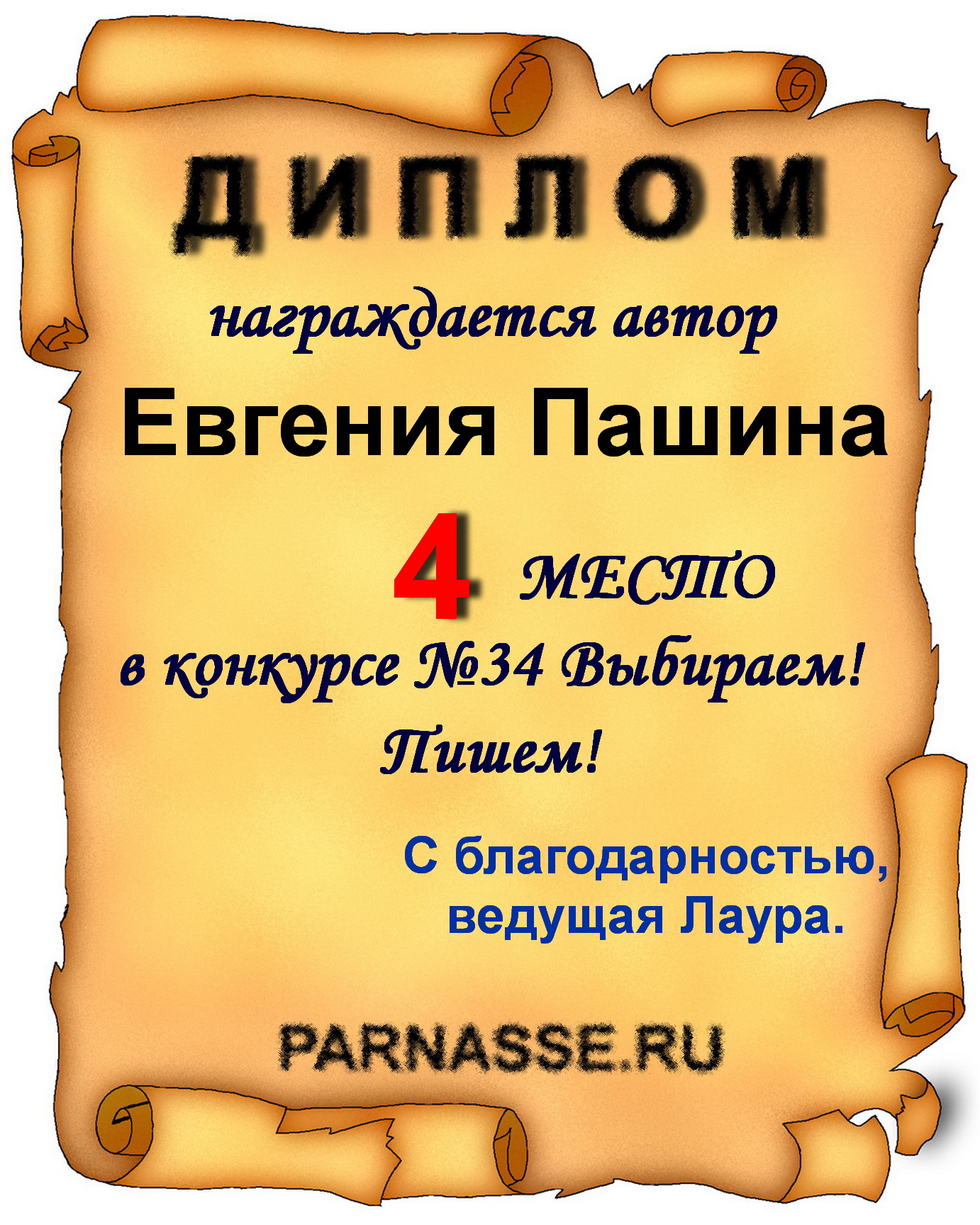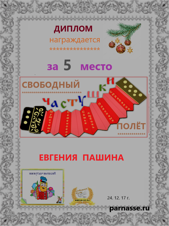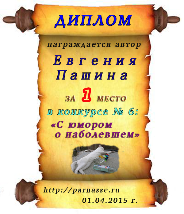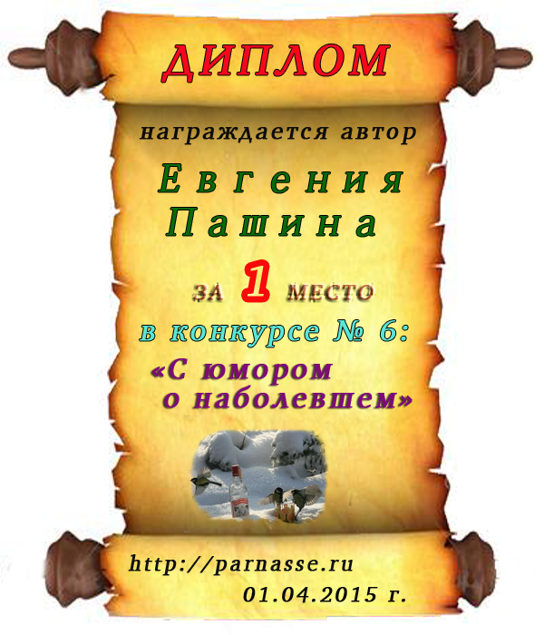 Диплом за 1 место в праздничном конкурсе "Поздравим Парнас с трёхлетием вместе!"