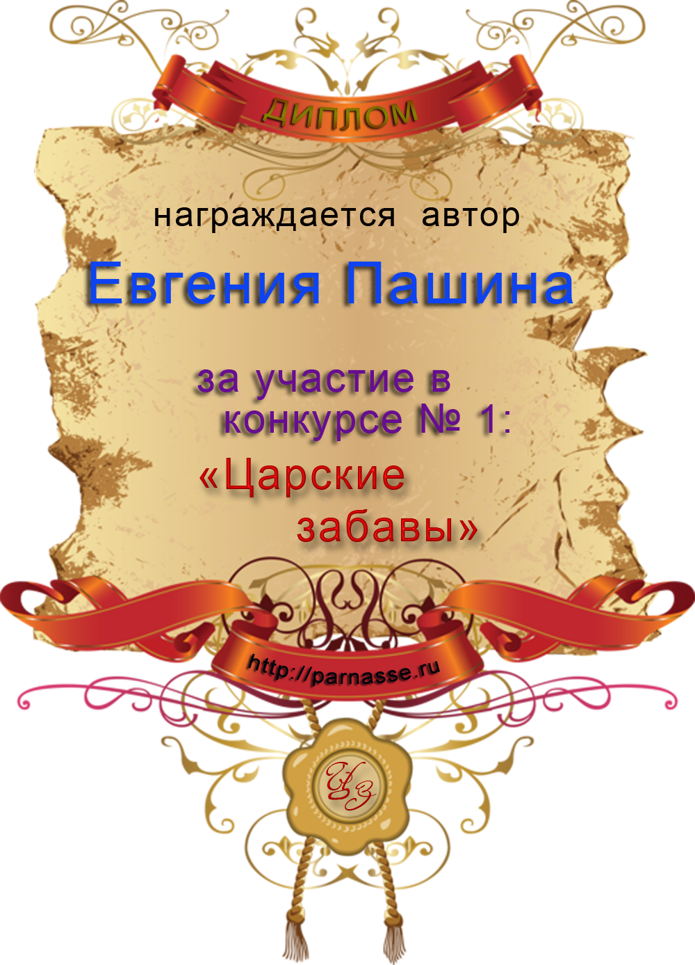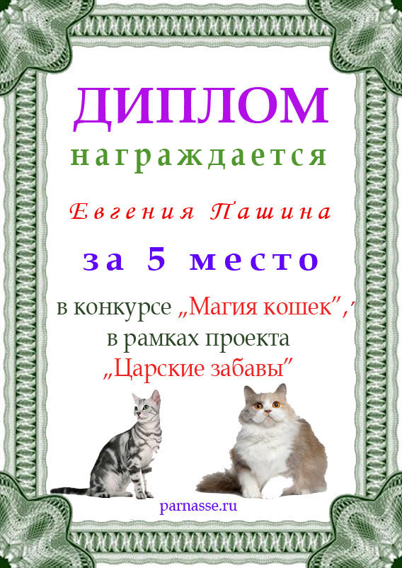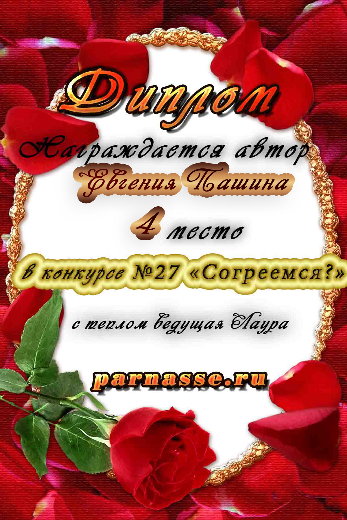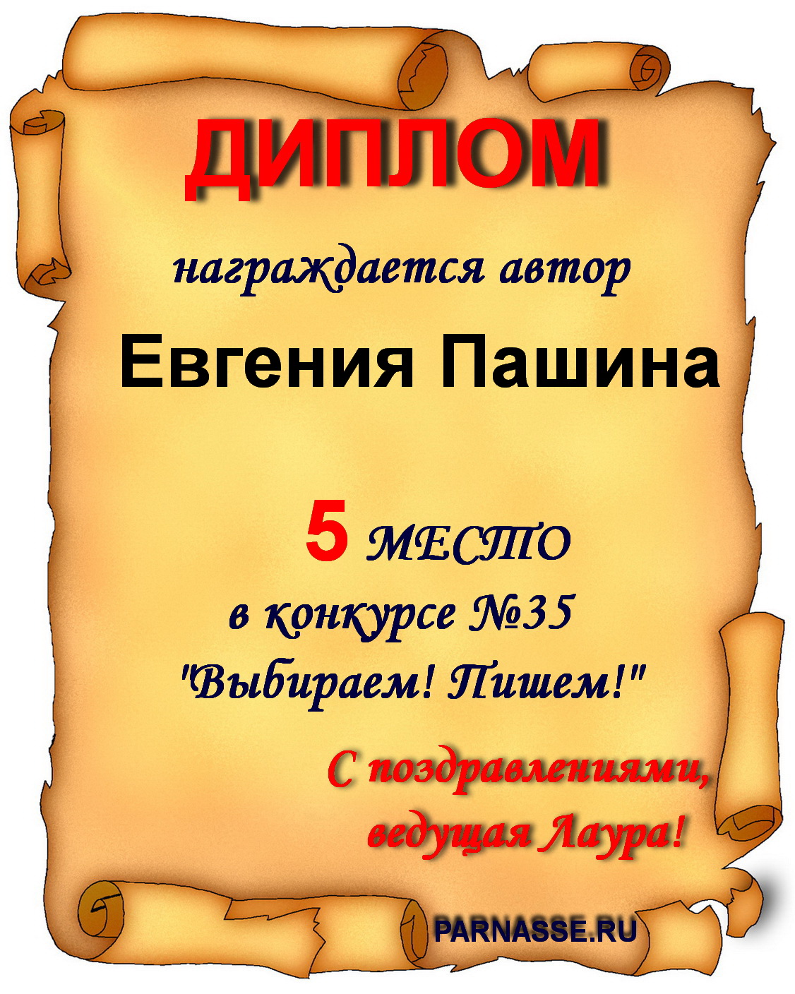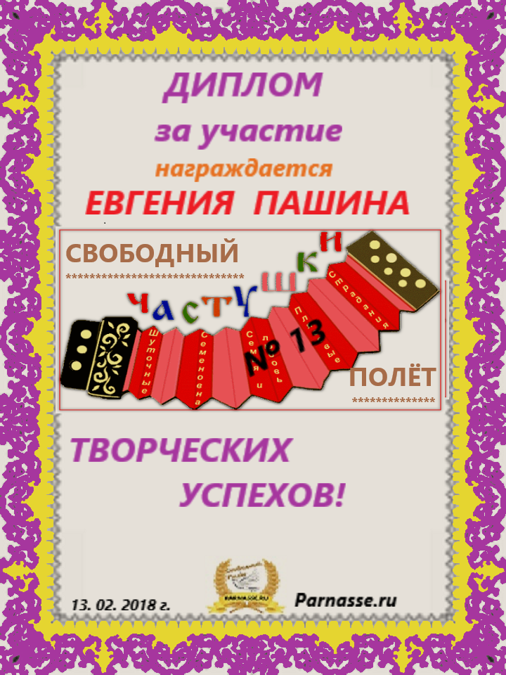 Диплом за 1 место в праздничном конкурсе "Поздравим Парнас с трёхлетием вместе!"