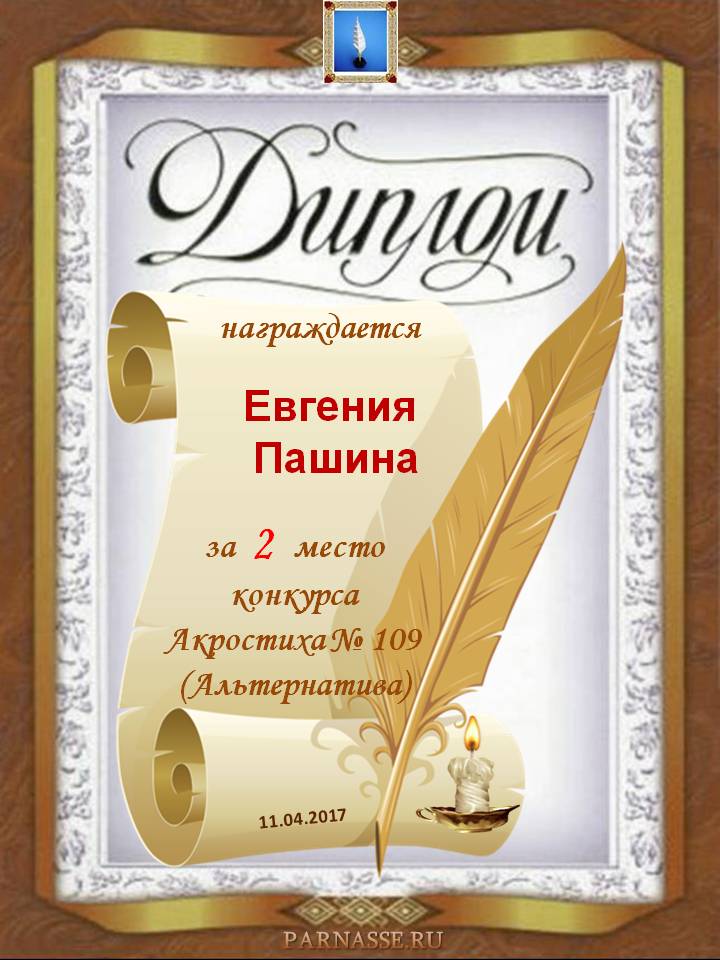 Диплом за 2 место в 109 конкурсе АКРОСТИХА (Альтернатива)! ПОЗДРАВЛЯЮ!