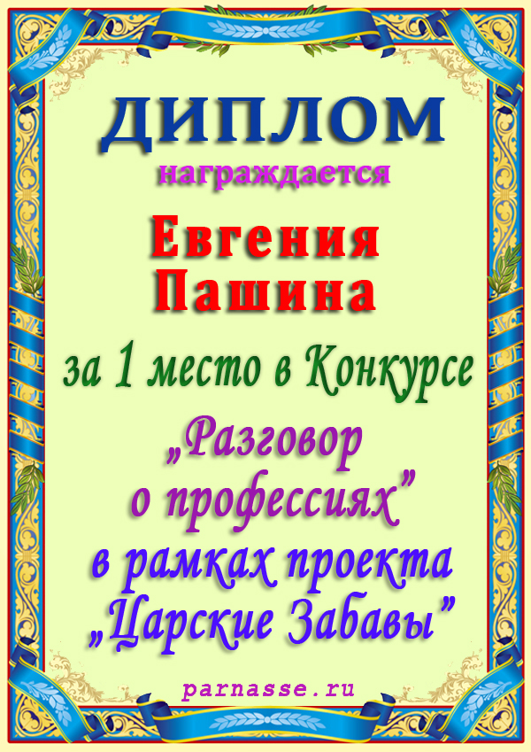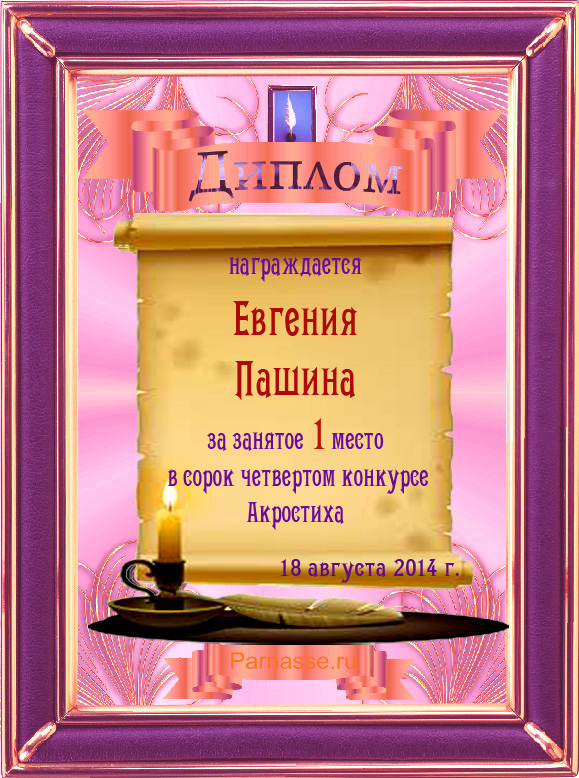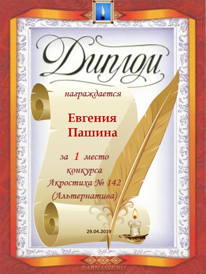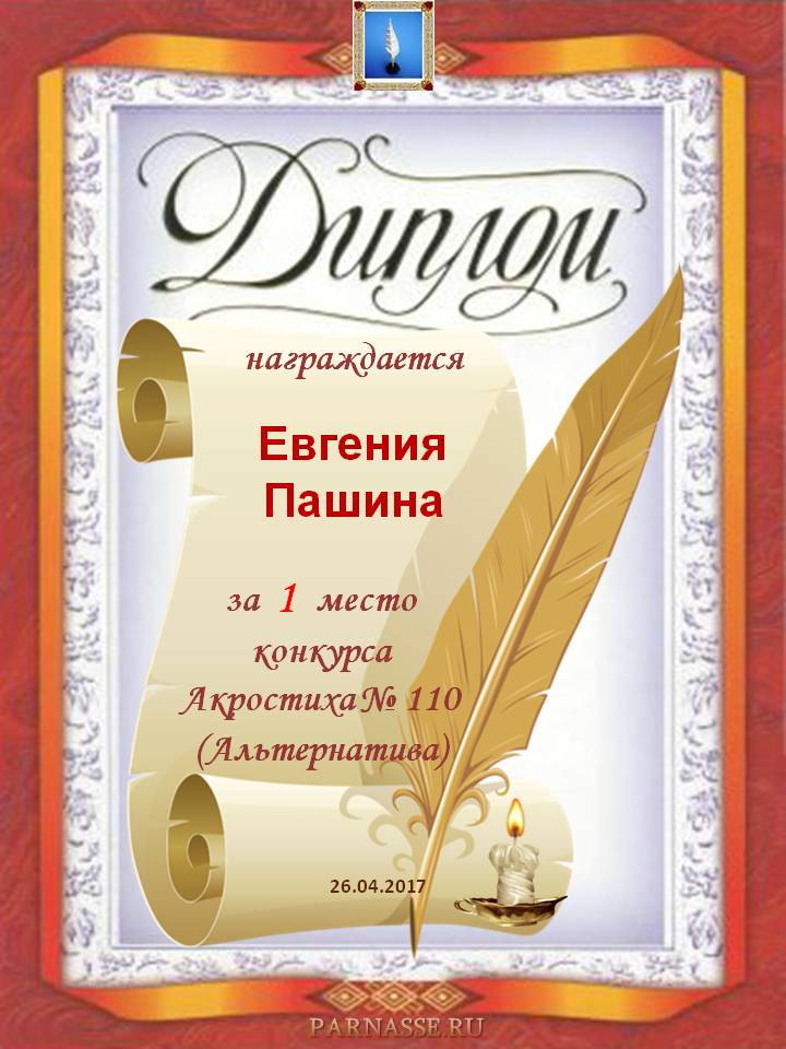 Диплом за 1 место в 110 конкурсе АКРОСТИХА (Альтернатива)! ПОЗДРАВЛЯЮ!