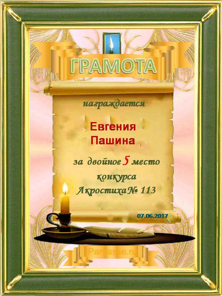 Грамота за 5 место в 117 конкурсе АКРОСТИХА (Альтернатива)! ПОЗДРАВЛЯЮ!