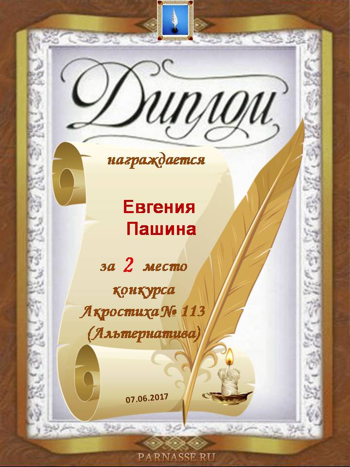 Диплом за 2 место в 113 конкурсе АКРОСТИХА (Альтернатива)! ПОЗДРАВЛЯЮ!