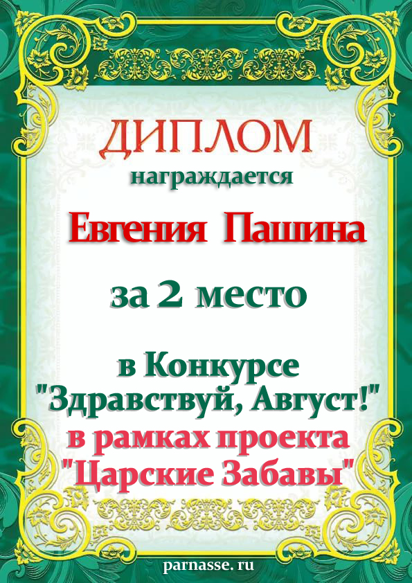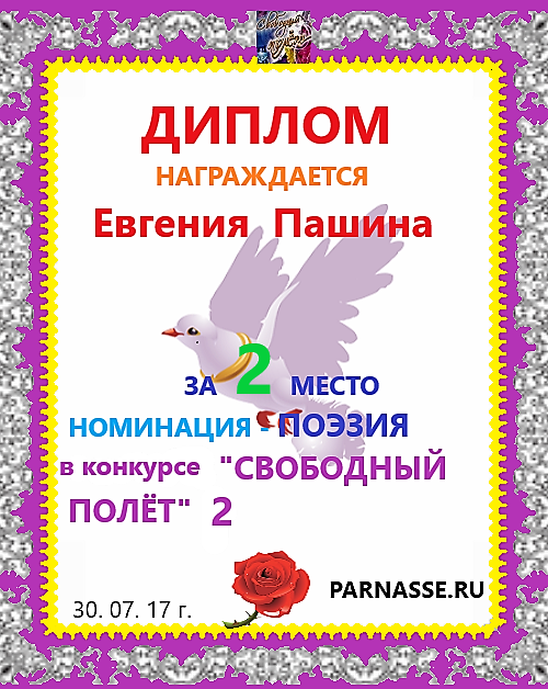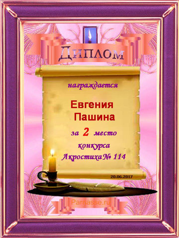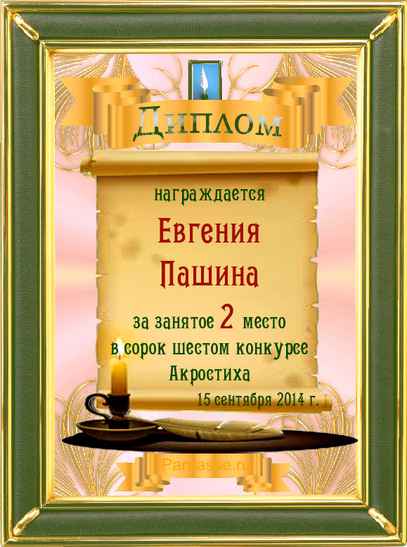 Диплом за 2 место в 103 конкурсе АКРОСТИХА (Альтернатива)! ПОЗДРАВЛЯЮ!
