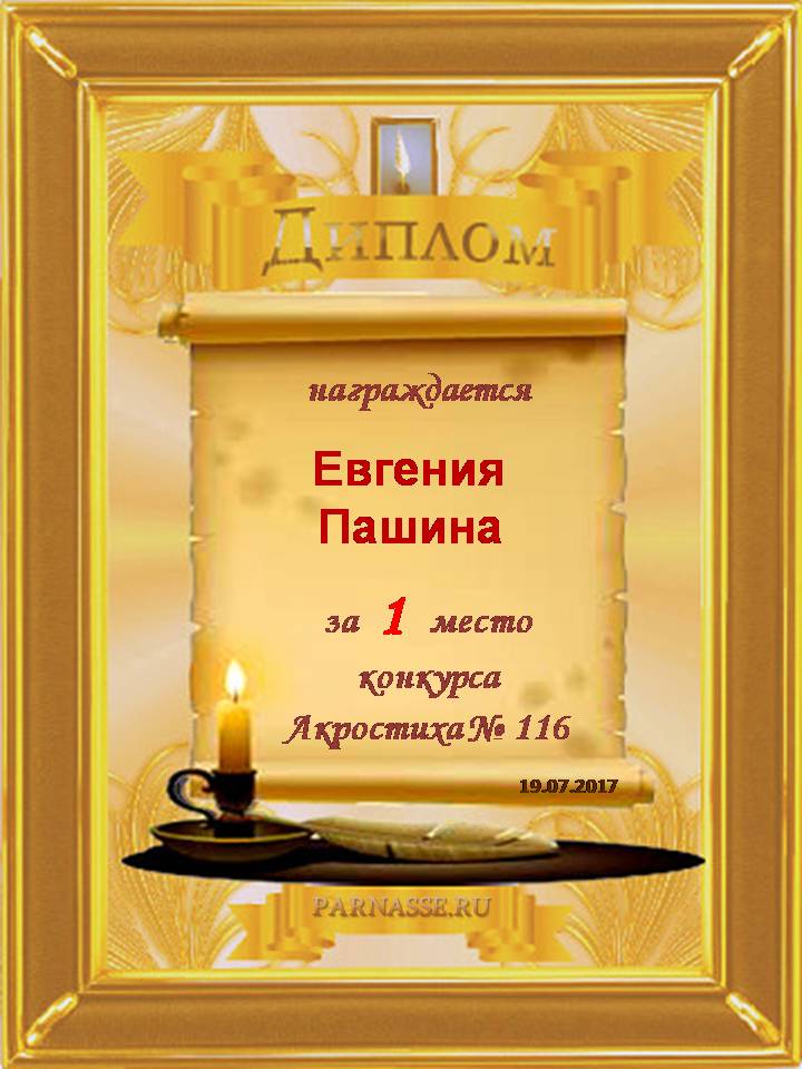 Диплом за 1 место в 116 конкурсе АКРОСТИХА (Альтернатива)! ПОЗДРАВЛЯЮ!