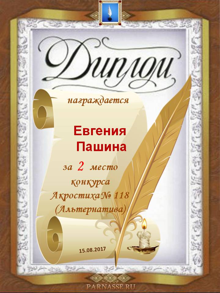 Диплом за 2 место в 118 конкурсе АКРОСТИХА (Альтернатива)! ПОЗДРАВЛЯЮ!