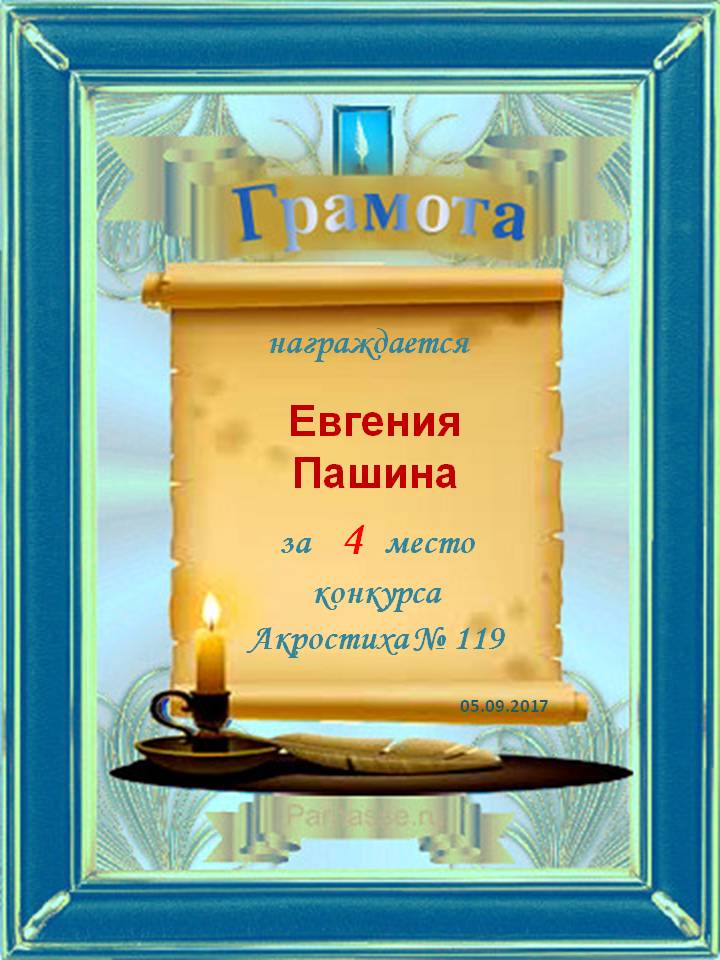 Грамота за 4 место в 119 конкурсе АКРОСТИХА (Альтернатива)! ПОЗДРАВЛЯЮ!