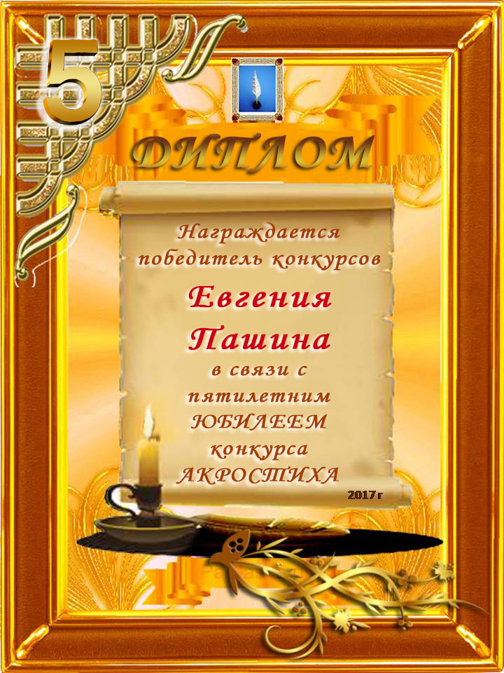Диплом победителю в конкурсах Акростиха в честь пятилетия конкурса Акростиха!
