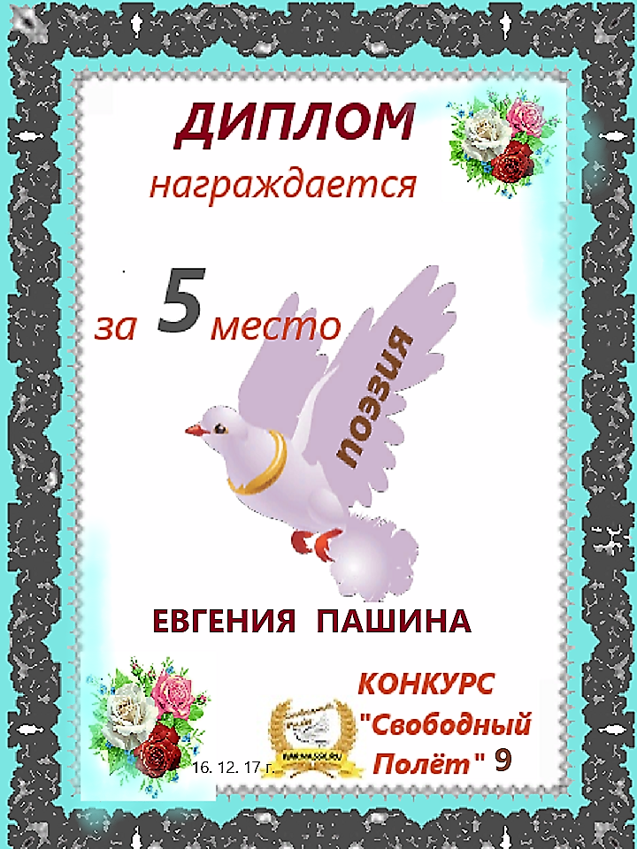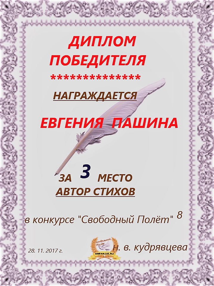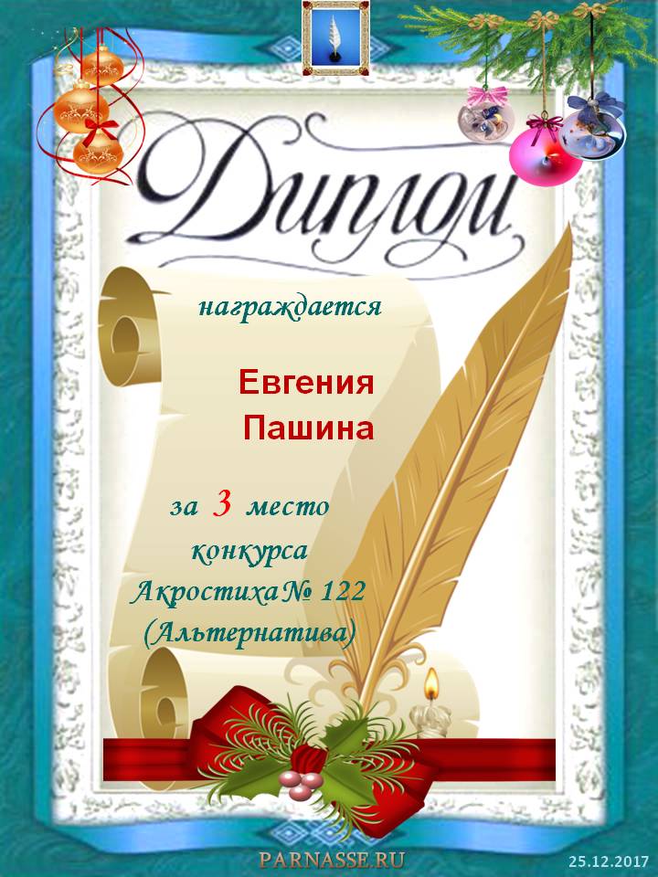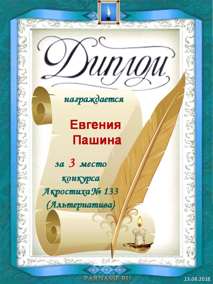 Диплом за 3 место в 112 конкурсе АКРОСТИХА (Альтернатива)! ПОЗДРАВЛЯЮ!
