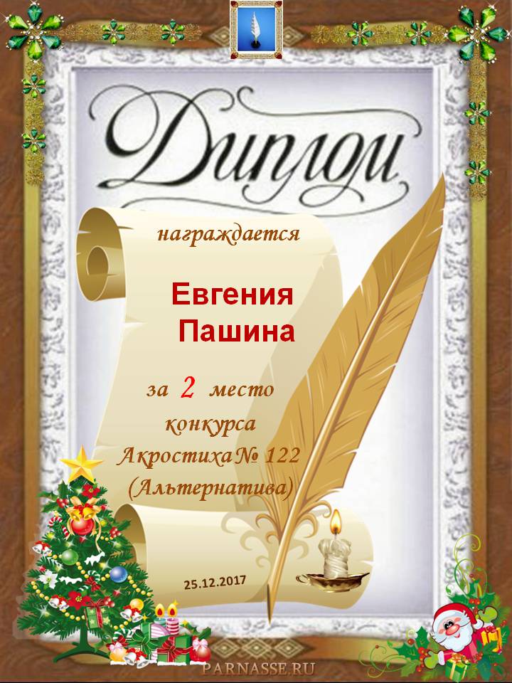 Диплом за 2 место в 122 конкурсе АКРОСТИХА (Альтернатива)! ПОЗДРАВЛЯЮ!