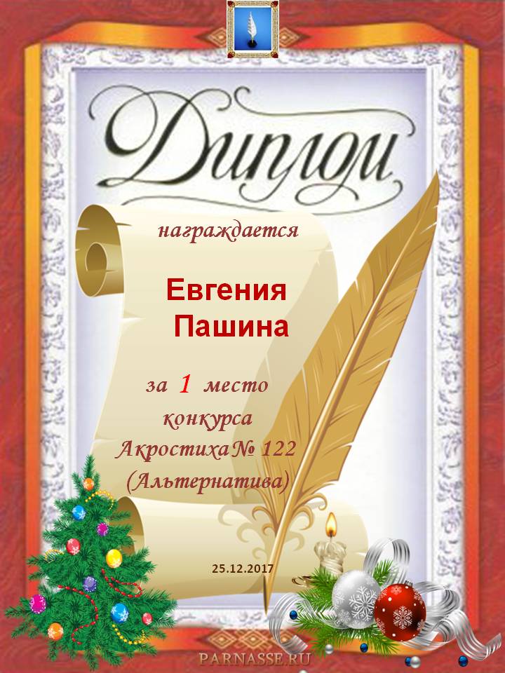 Диплом за 1 место в 122 конкурсе АКРОСТИХА (Альтернатива)! ПОЗДРАВЛЯЮ!