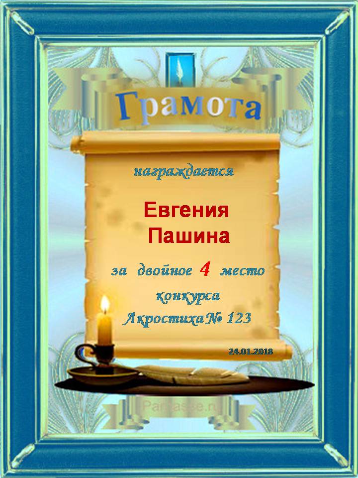 Грамота за 4 место в 123 конкурсе АКРОСТИХА (Альтернатива)! ПОЗДРАВЛЯЮ!