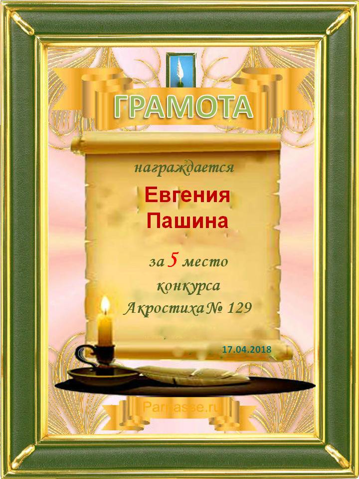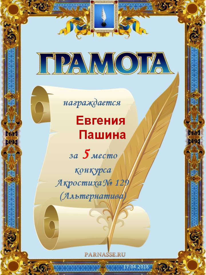 Грамота за 5 место в 129 конкурсе АКРОСТИХА (Альтернатива)! ПОЗДРАВЛЯЮ!