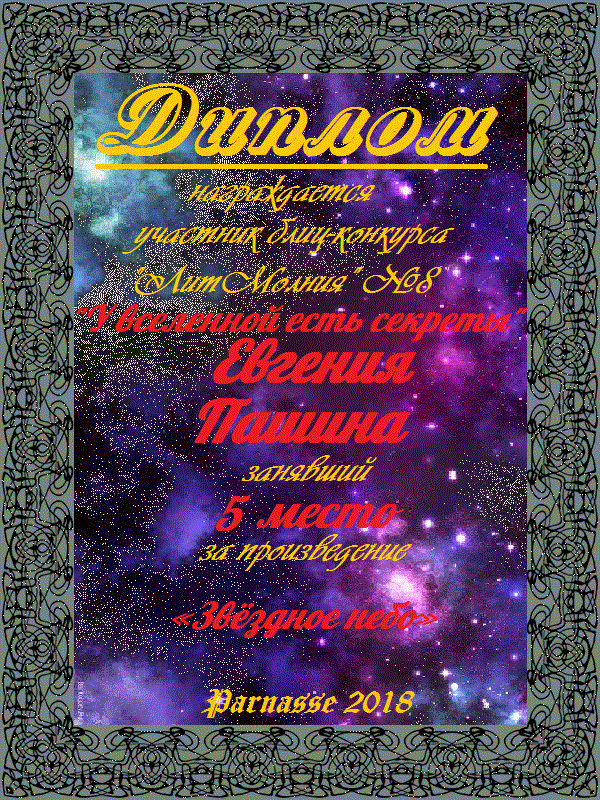 Пятое место в Блиц-конкурсе №8 "У вселенной есть секреты" за произведение «ЗВЁЗДНОЕ НЕБО». Поздравляем!