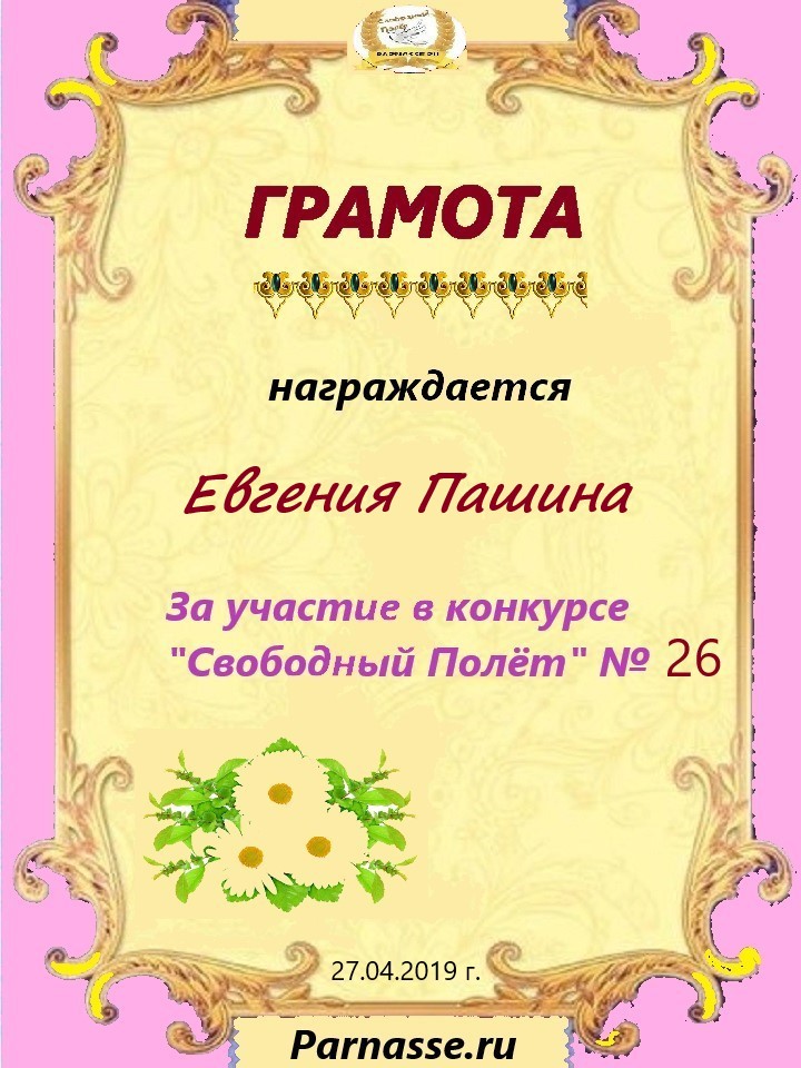 за участие в конкурсе " Свободный Полёт" № 26