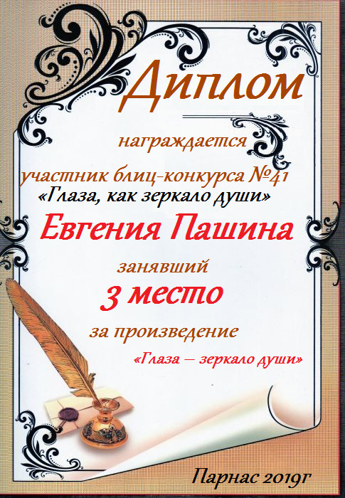 Третье место в Блиц-конкурсе №41 "Глаза, как зеркало души" за произведение «Глаза – зеркало души». Поздравляем!