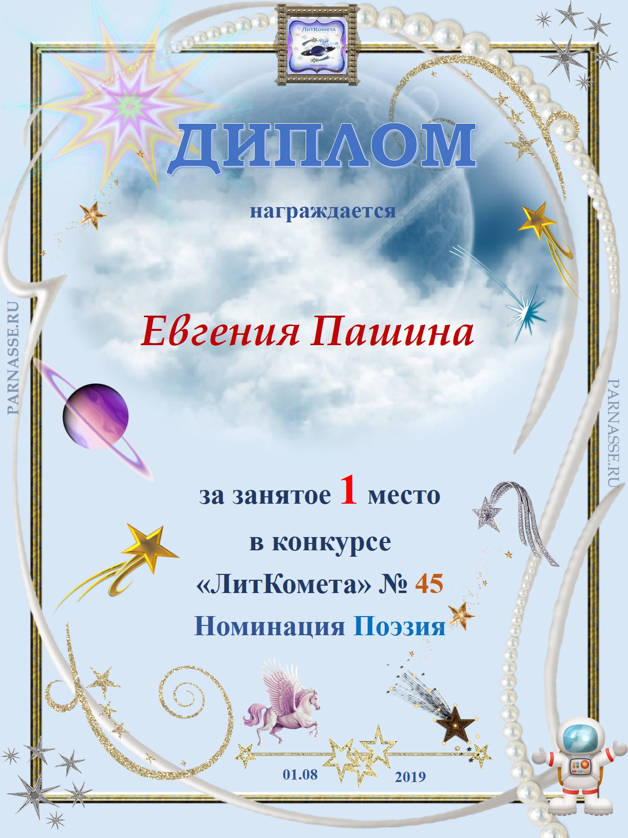 За 1 место - Номинация Поэзия, ЛитКомета, Полёт № 45