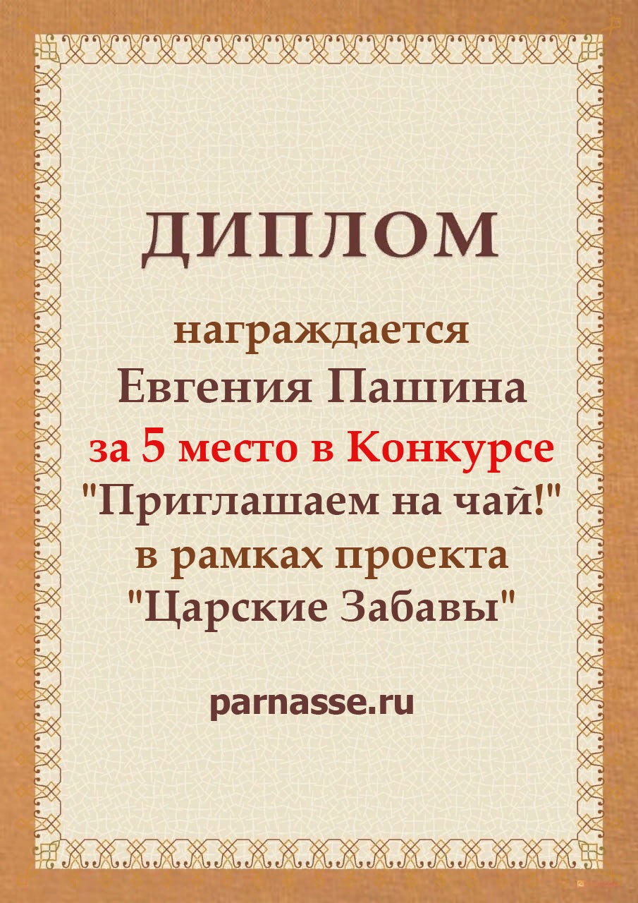 За 5 место в конкурсе "Приглашаем на чай!" в рамках проекта "Царские Забавы"