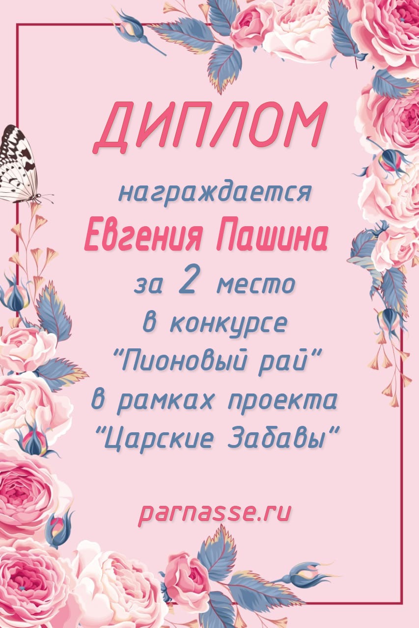 За 2 место в конкурсе "Пионовый рай" в рамках проекта "Царские Забавы"