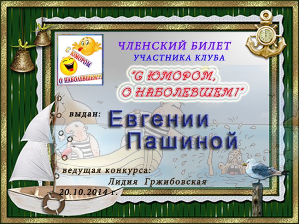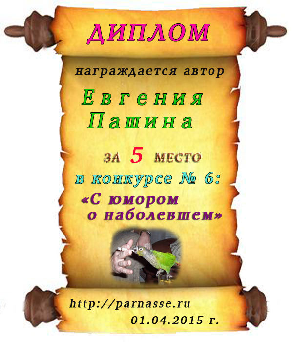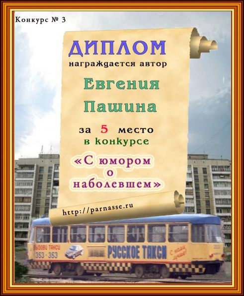 Диплом за 4 место в конкурсе "С юмором. о наболевшем" № 5.