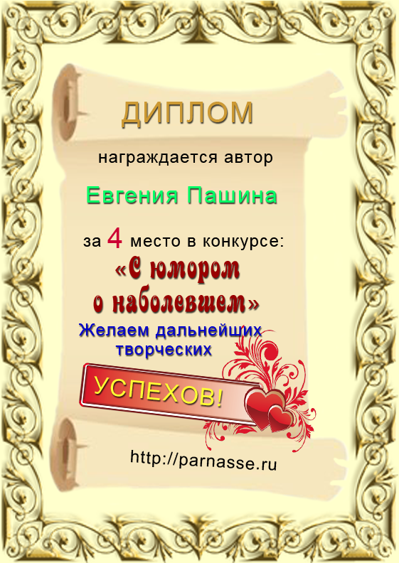 Диплом за 4 место в конкурсе " С юмором. о наболевшем"