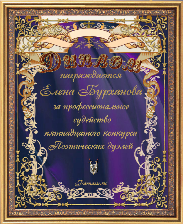 ДИПЛОМ ЗА ПРОФЕССИОНАЛЬНОЕ СУДЕЙСТВО В СЕДЬМОМ КОНКУРСЕ ПОЭТИЧЕСКИХ ДУЭЛЕЙ