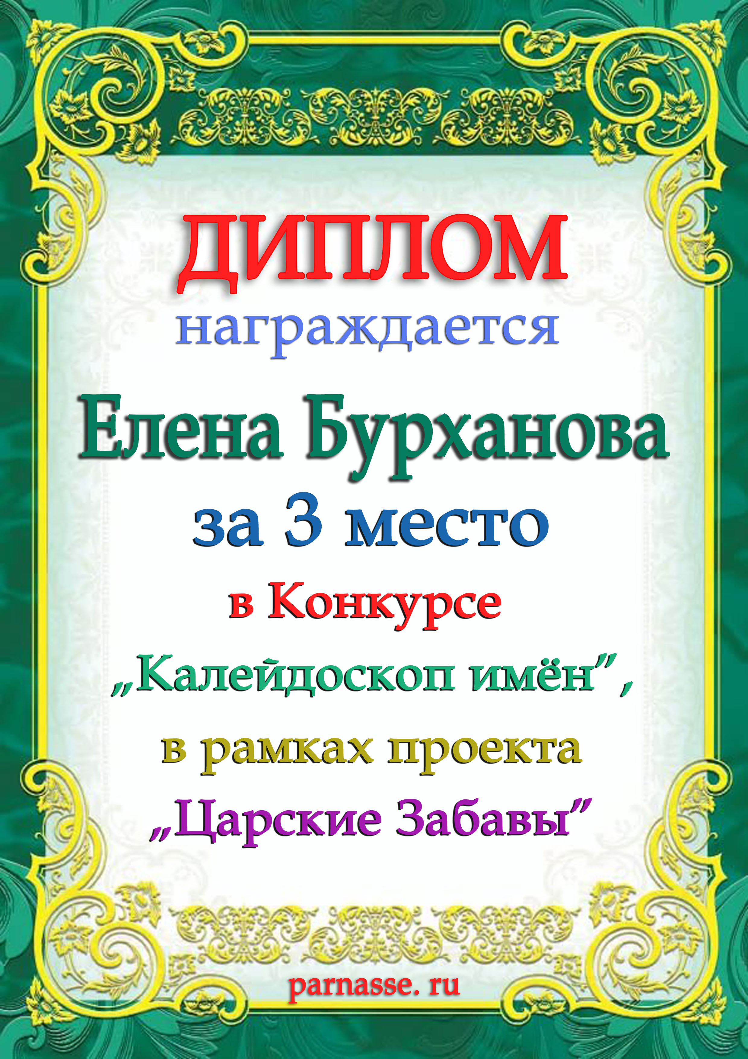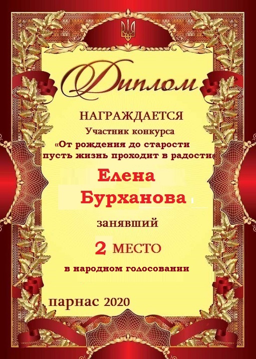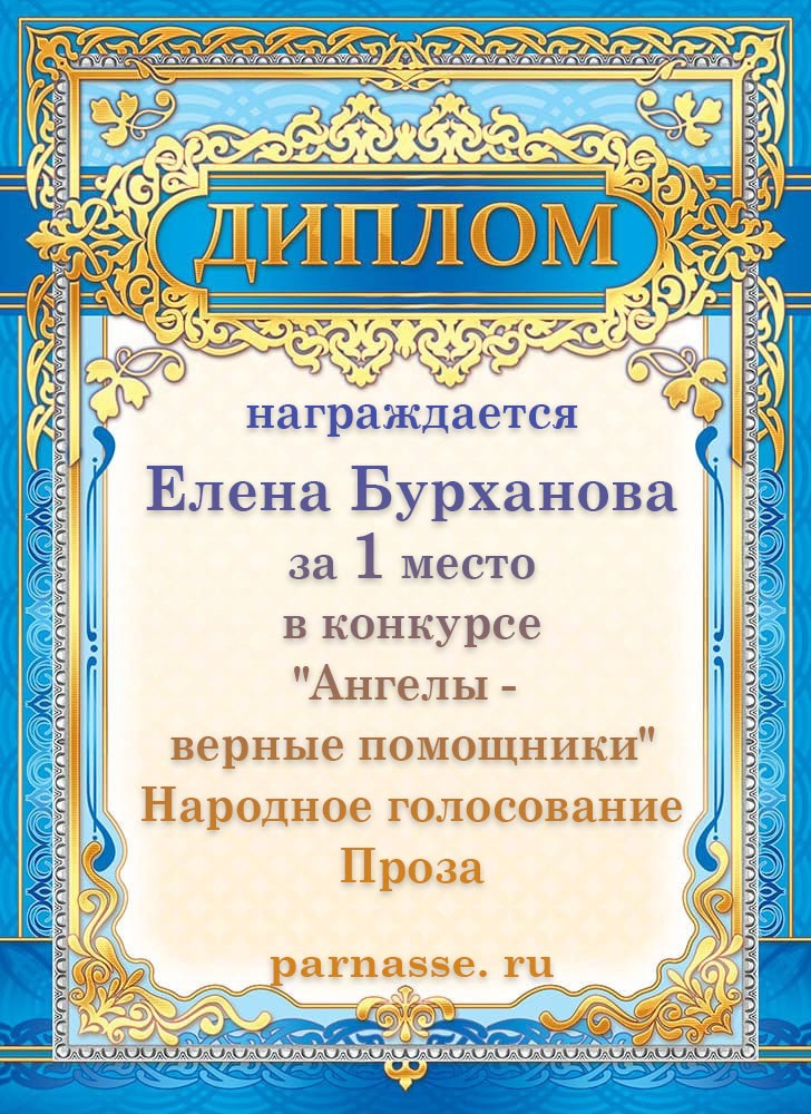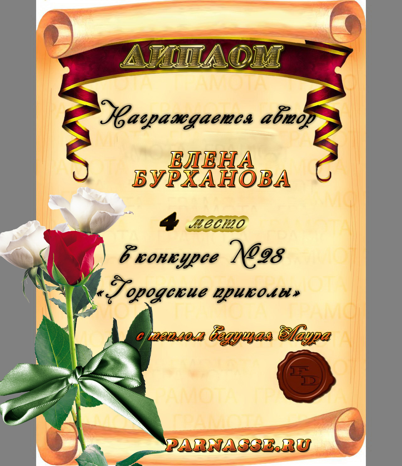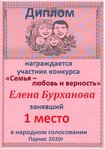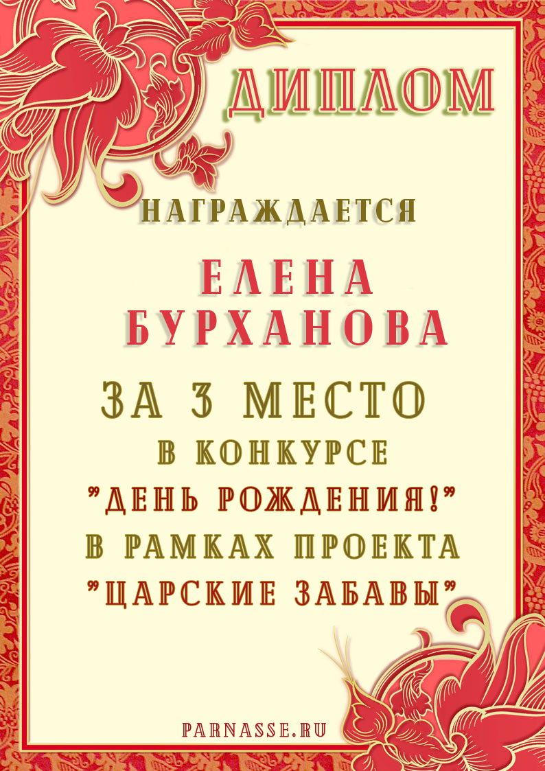 Диплом за 1 место в праздничном конкурсе "Поздравим Парнас с трёхлетием вместе!"