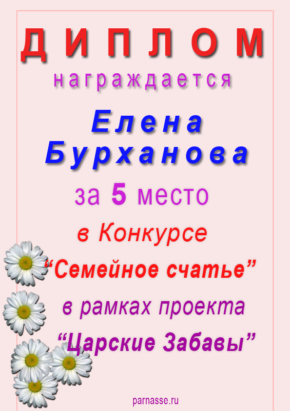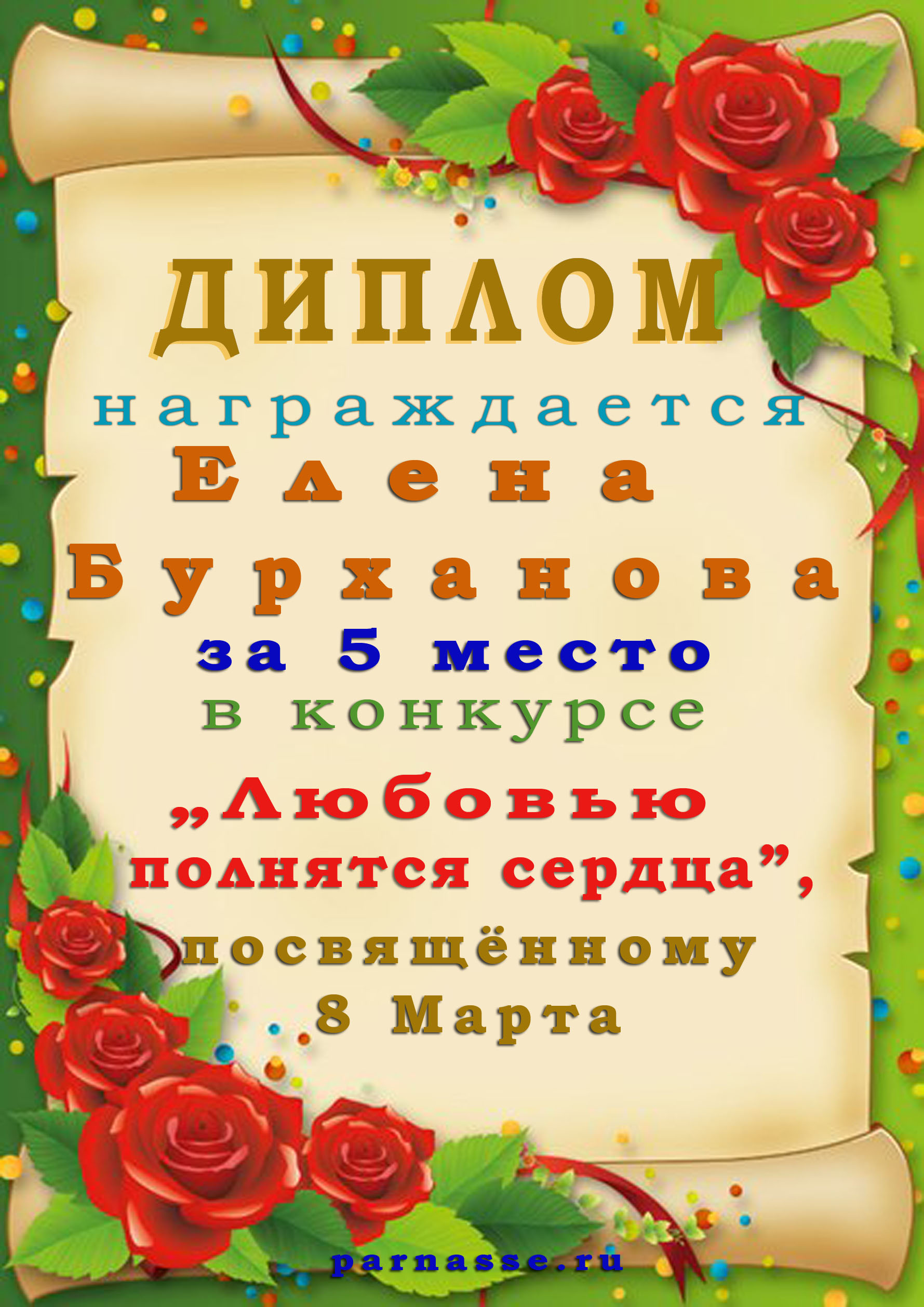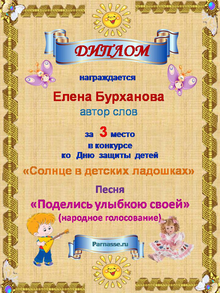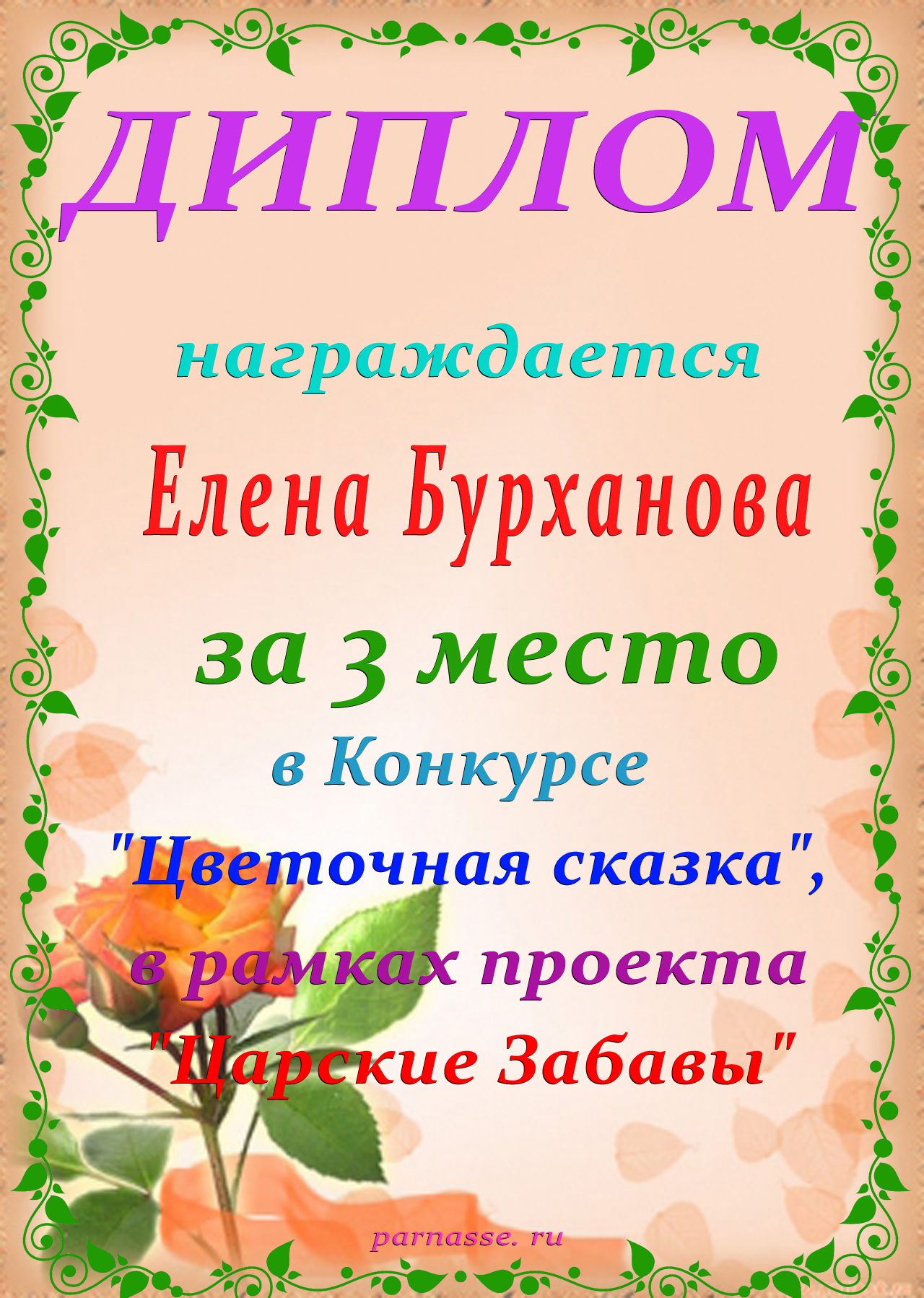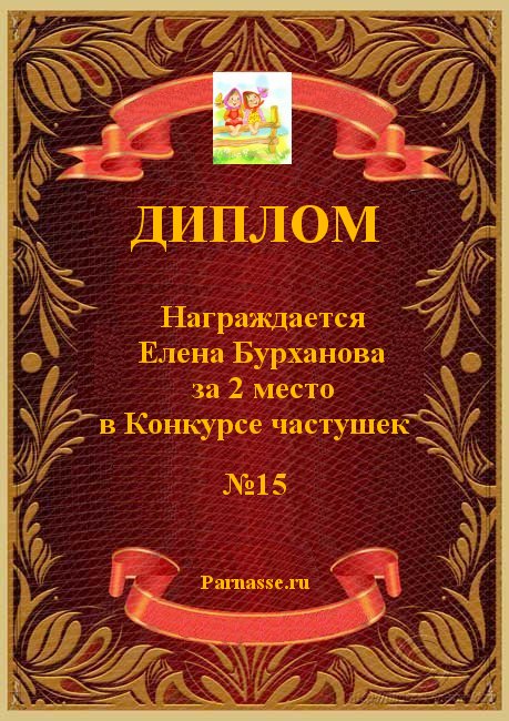 Диплом за 1 место в праздничном конкурсе "Поздравим Парнас с трёхлетием вместе!"