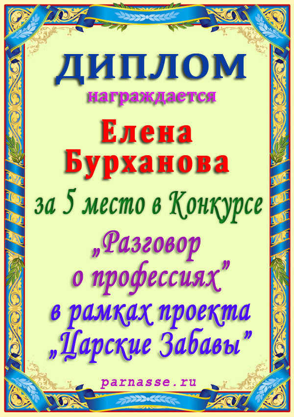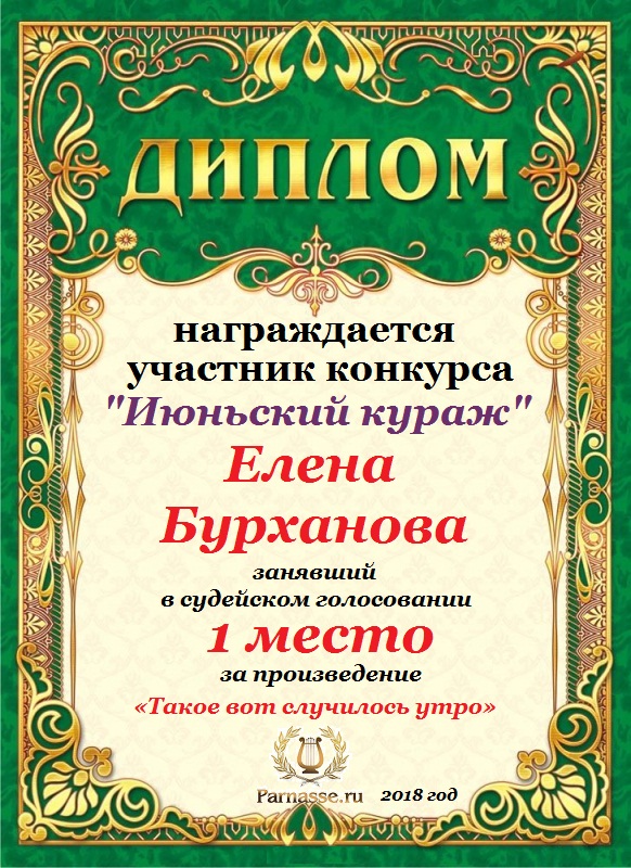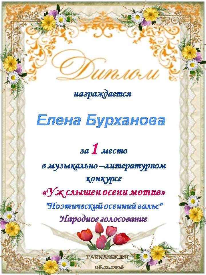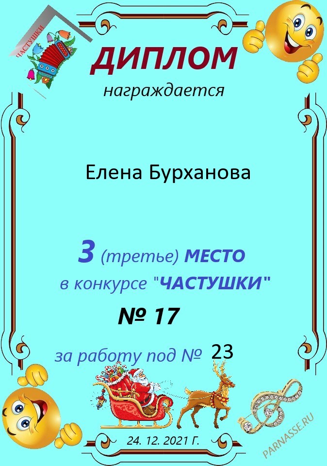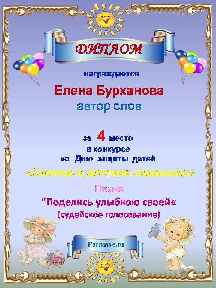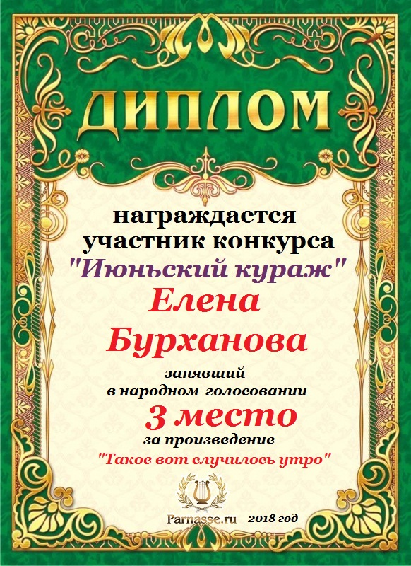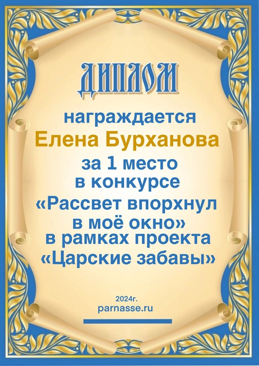 Диплом за 1 место в праздничном конкурсе "Поздравим Парнас с трёхлетием вместе!"