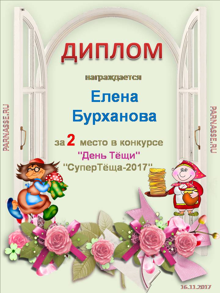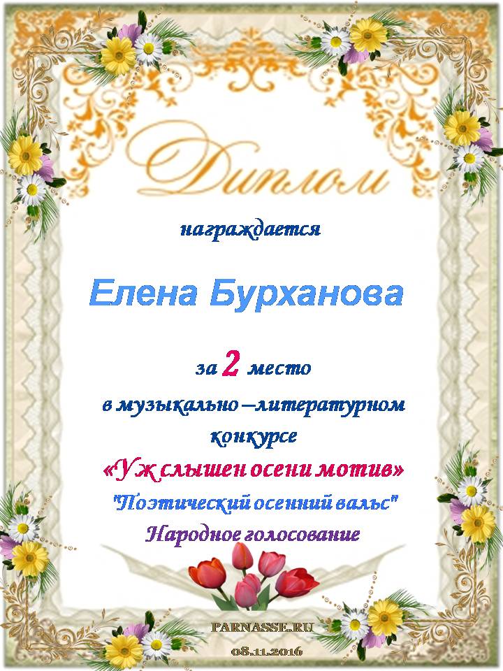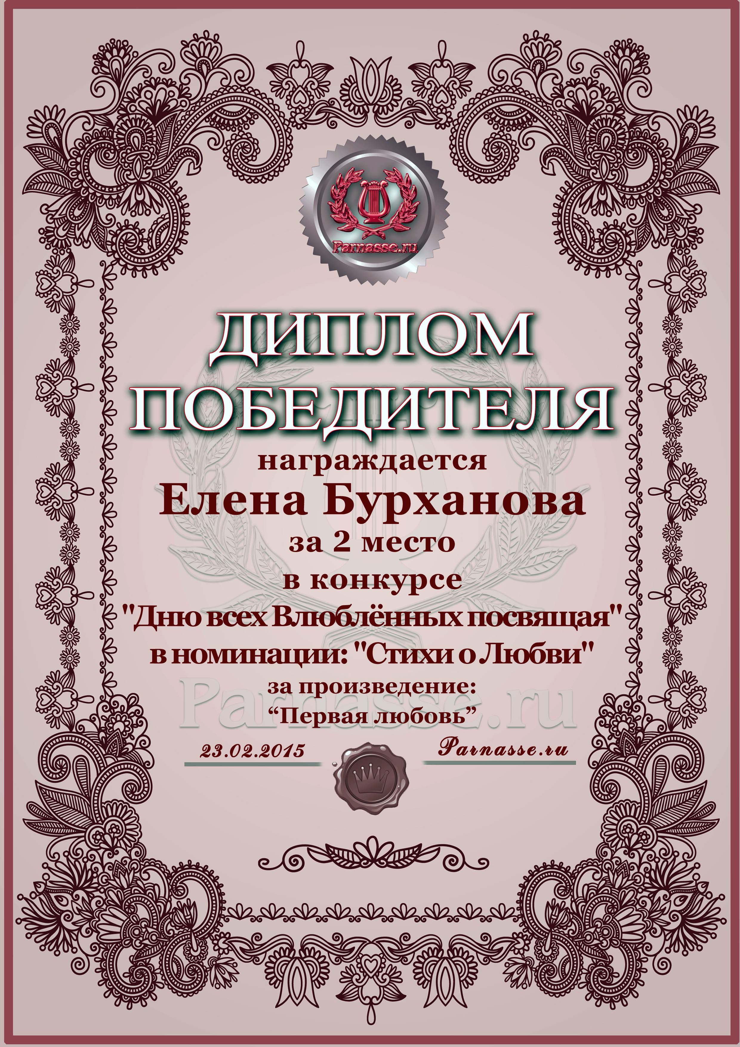 Диплом за 2 место в конкурсе "Дню всех Влюблённых посвящая"