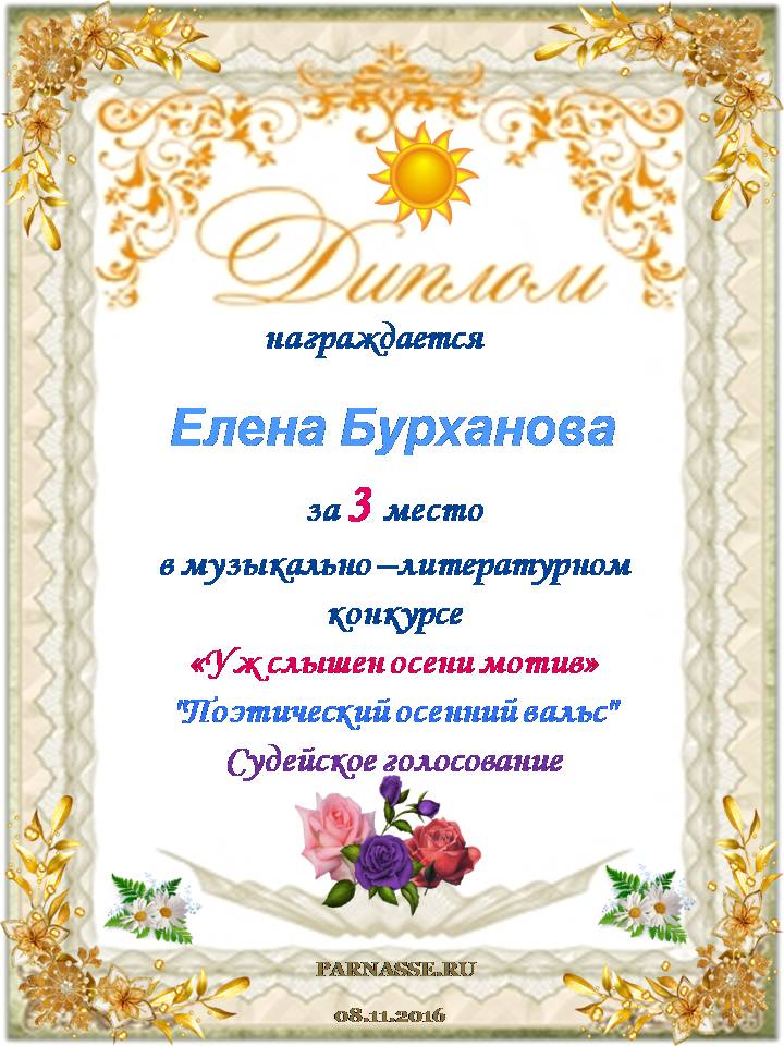 За 3 место в конкурсе "Уж слышен осени мотив"
