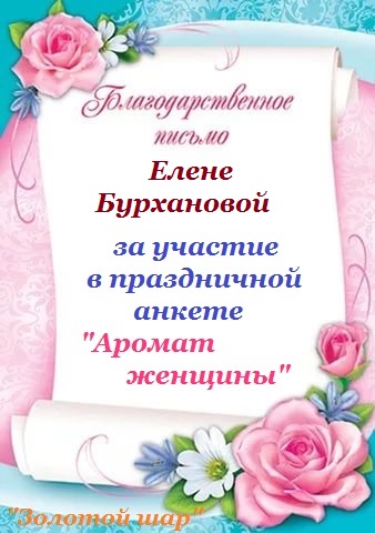 Похвальная грамота за участие в викторине "МУЖЧИНА ГЛАЗАМИ ЖЕНЩИНЫ"
