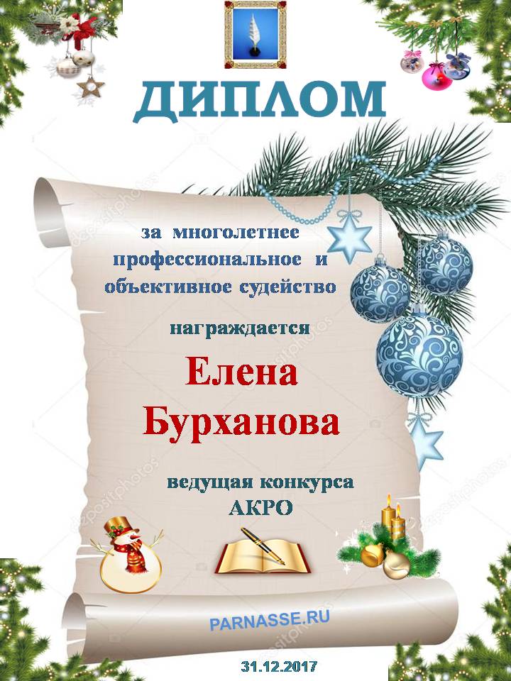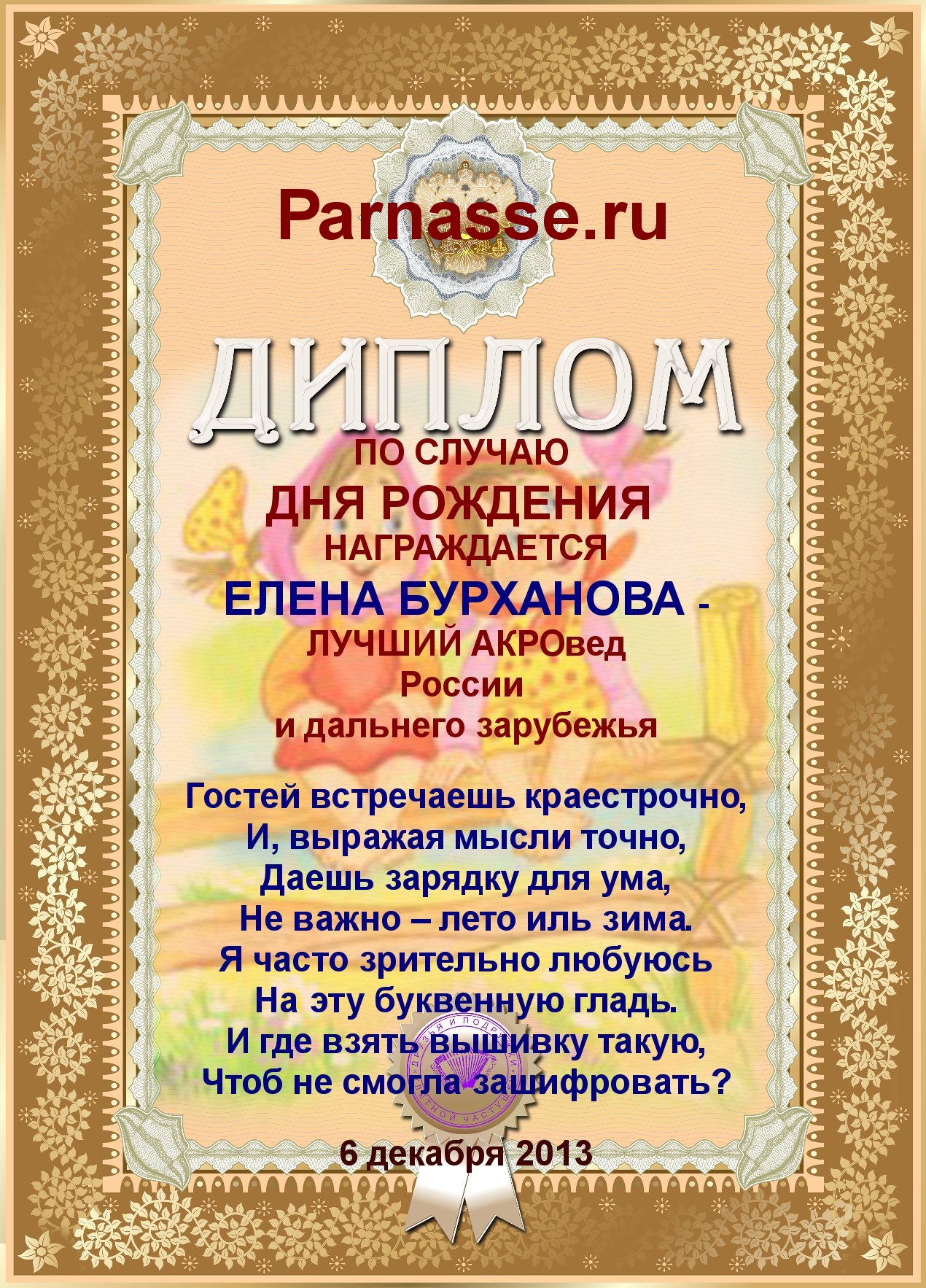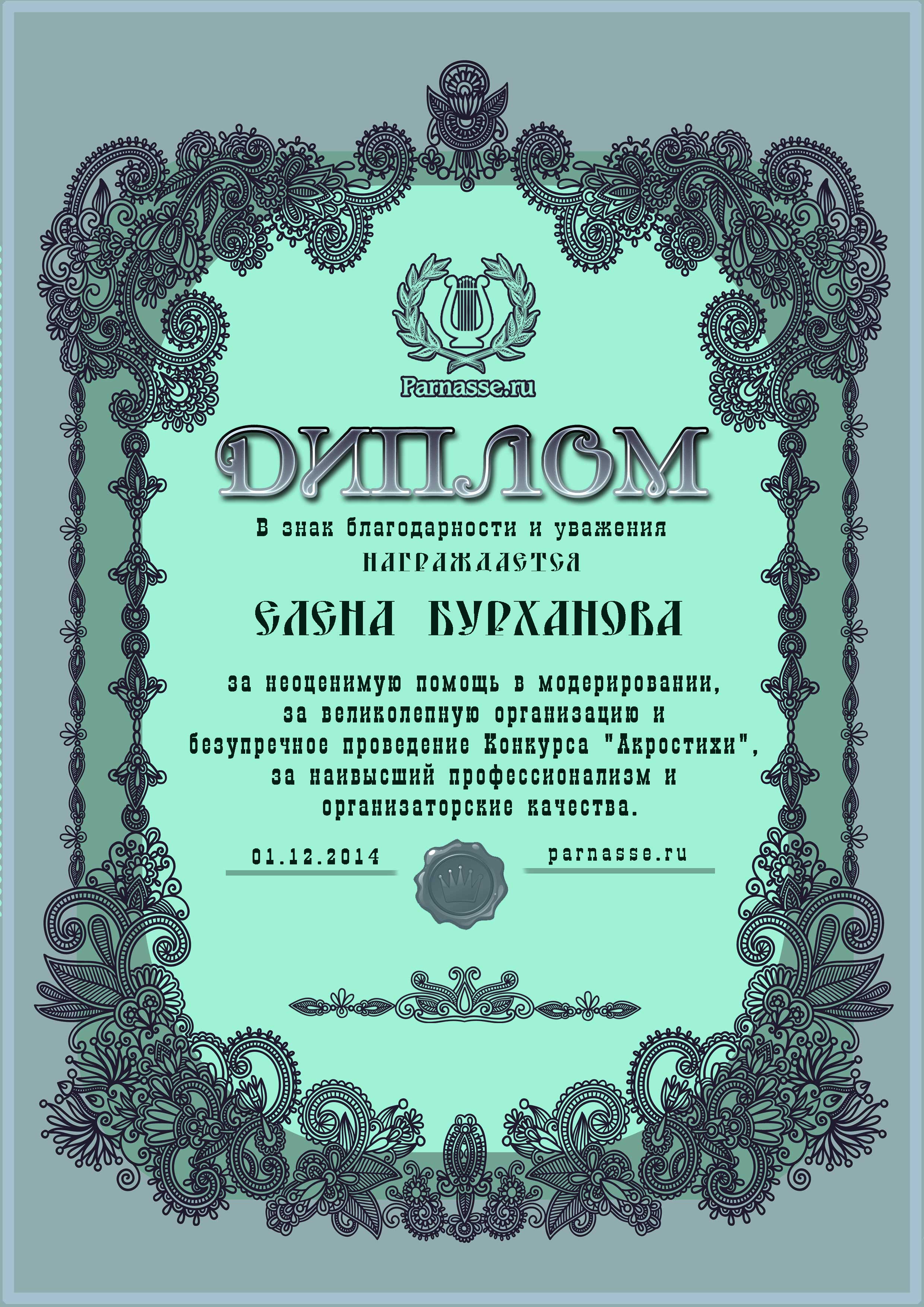 Диплом за создание и организацию конкурса Акростиха бессменной ведущей