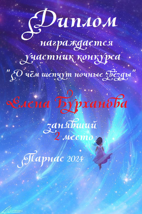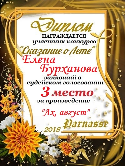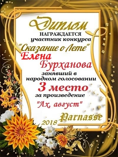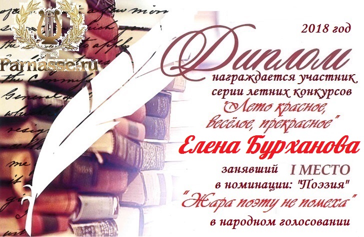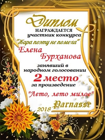 Победителю конкурса:"Под жарким взглядом летней музы". Поздравляем со 2 местом в номинации - "Стихи о лете"