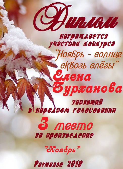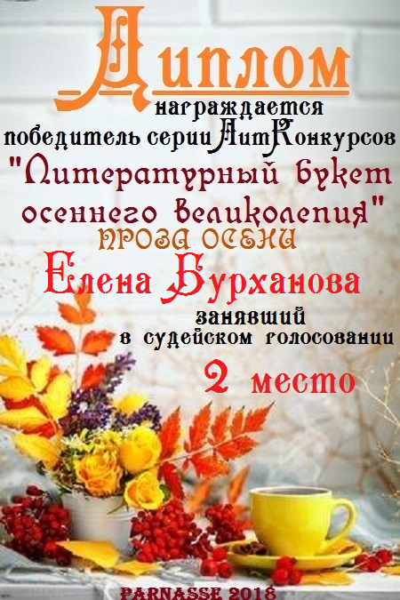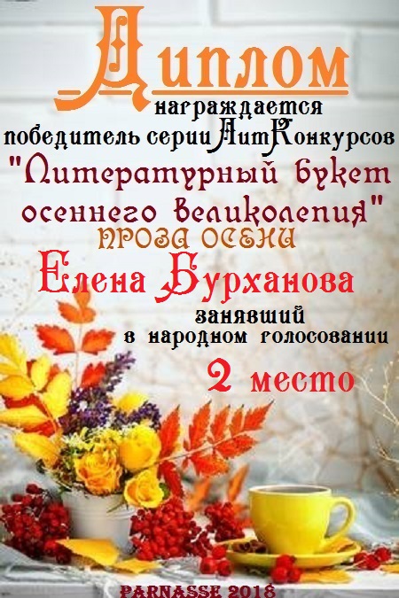 Поздравляем с 3 местом в конкурсе "Литературный букет осеннего очарования" - номинация Проза, народное голосование!