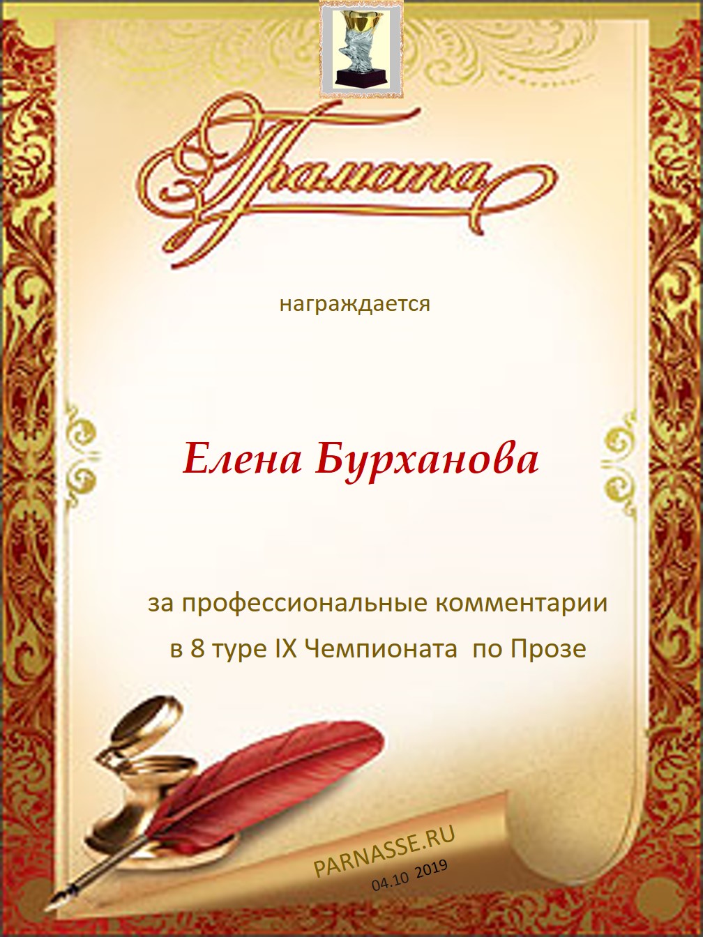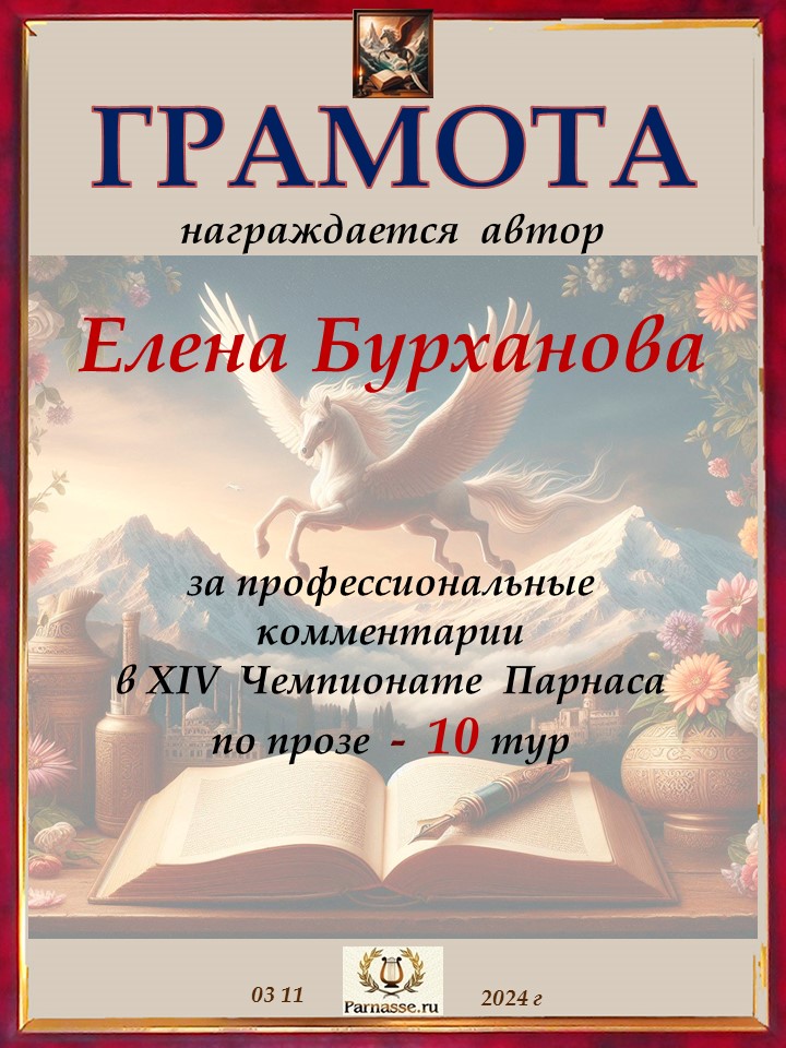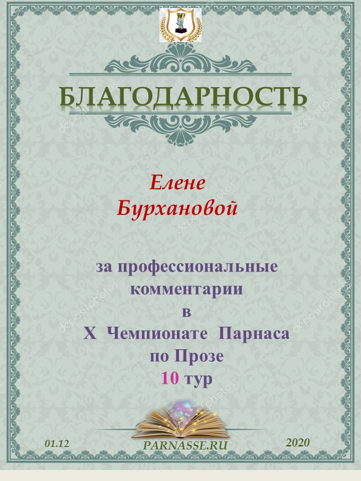 Большое спасибо за профессиональные и объективные комментарии в 10 туре X Чемпионата Парнаса по Прозе!