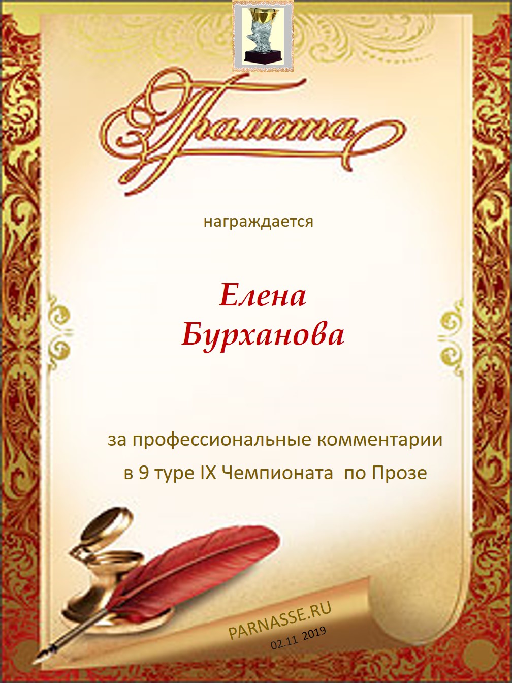Спасибо за профессиональные комментарии в IX Чемпионате Парнаса по Прозе - 9 тур!