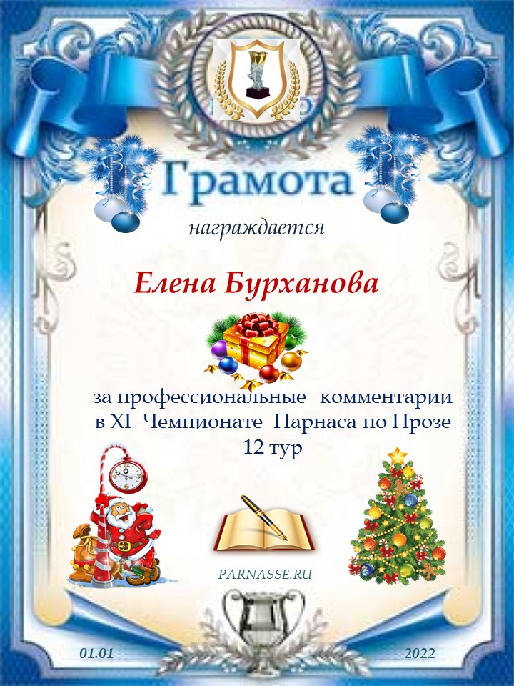 Спасибо, Леночка, за профессиональные комментарии в 7 туре XI Чемпионата Парнаса по Прозе!