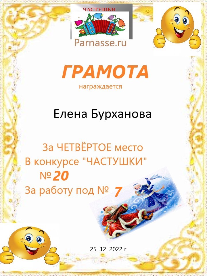 Уважаемая Елена !Спасибо Вам большое за прекрасный конкурс "Частушки"!
