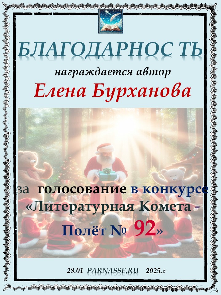 ![]() Медаль за голосование в конкурсе "ЛитКомета - Полёт № 92"