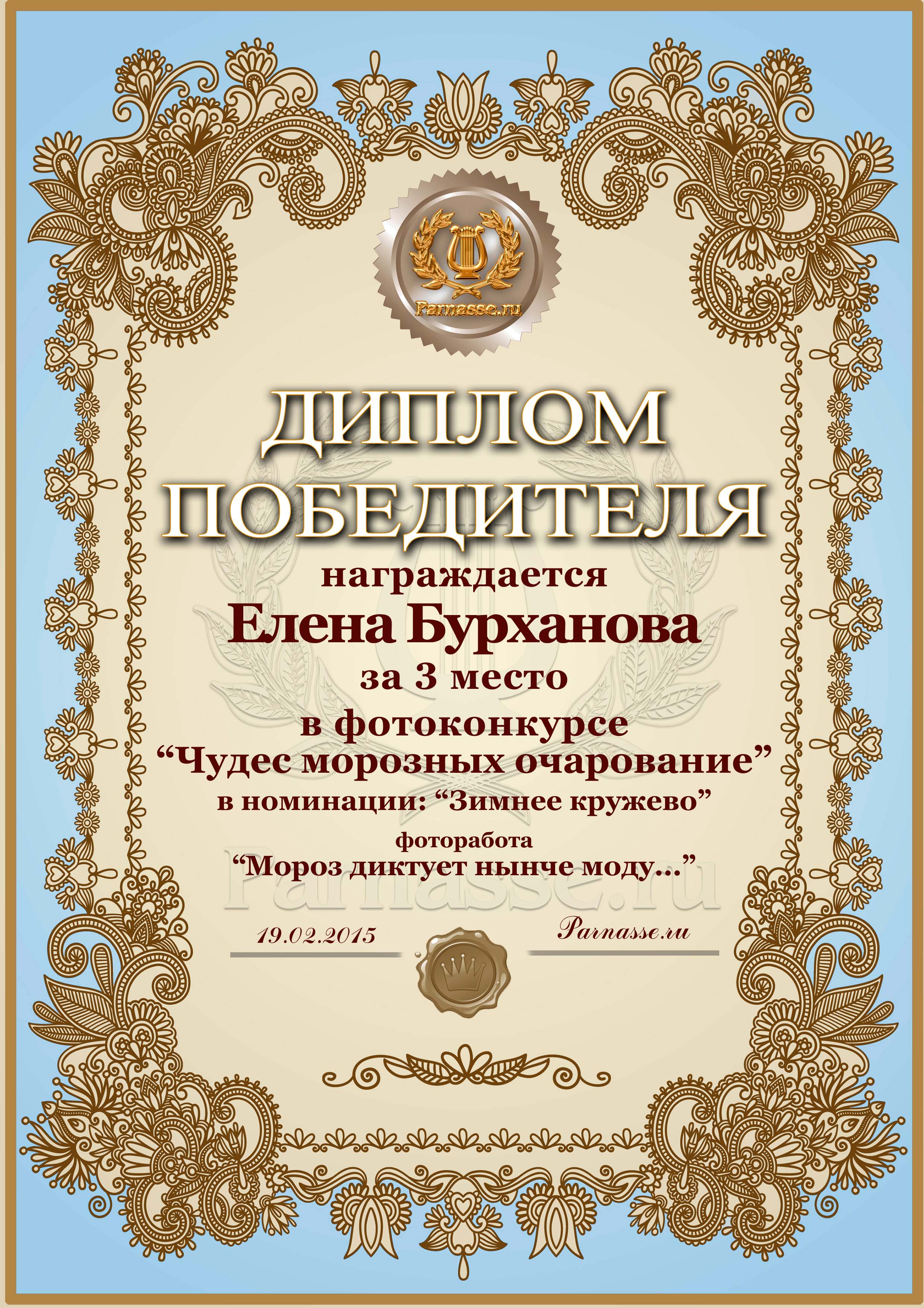 Диплом за 3 место в фотоконкурсе "Чудес морозных очарование"